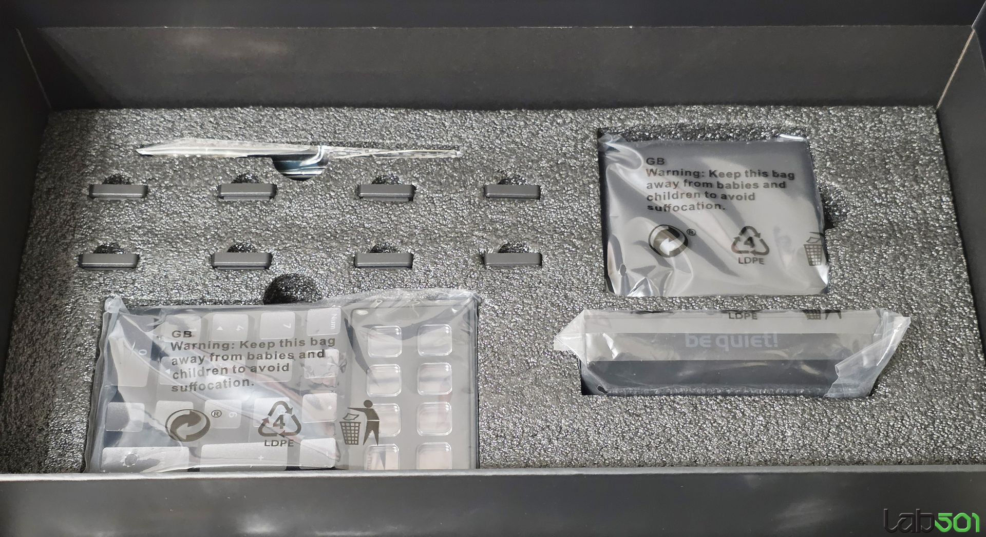 Practic, singurele accesorii care lipsesc din pachet, din punctul meu de vedere, sunt cateva switch-uri de rezerva, respectiv cateva keycaps-uri alternative pentru Esc, Enter, s.a.m.d. Pe de alta parte, be quiet! Dark Mount are un pachet foarte bogat de accesorii, deci nu prea avem de ce sa ne plangem.