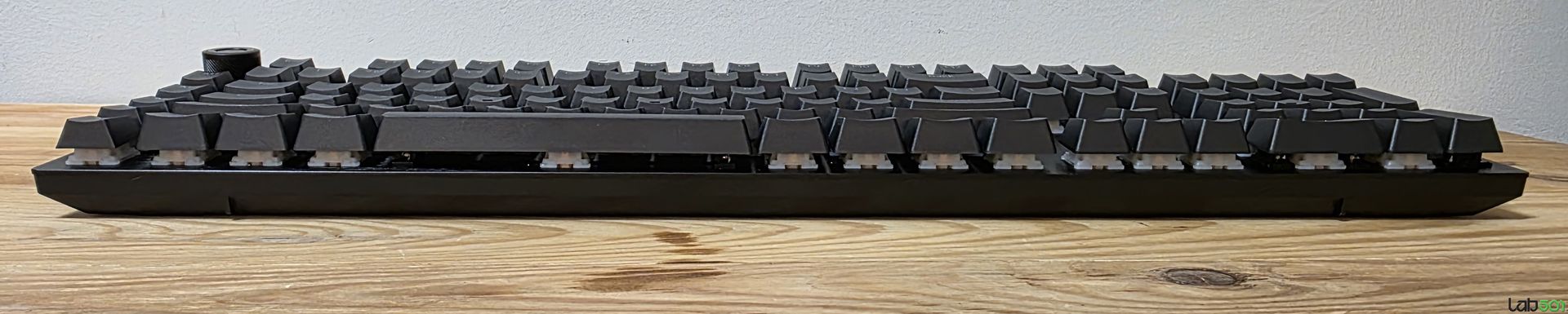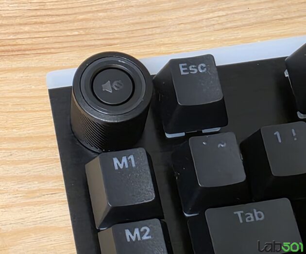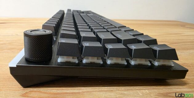 De aceasta data, difuzorul RGB este montat pe latura superioara a carcasei, nu de jur imprejur, in timp ce latura stanga adaposteste un buton rotativ pentru controlul volumului, respectiv mute/un-mute, sub acesta fiind pozitionate 5 taste Macro.