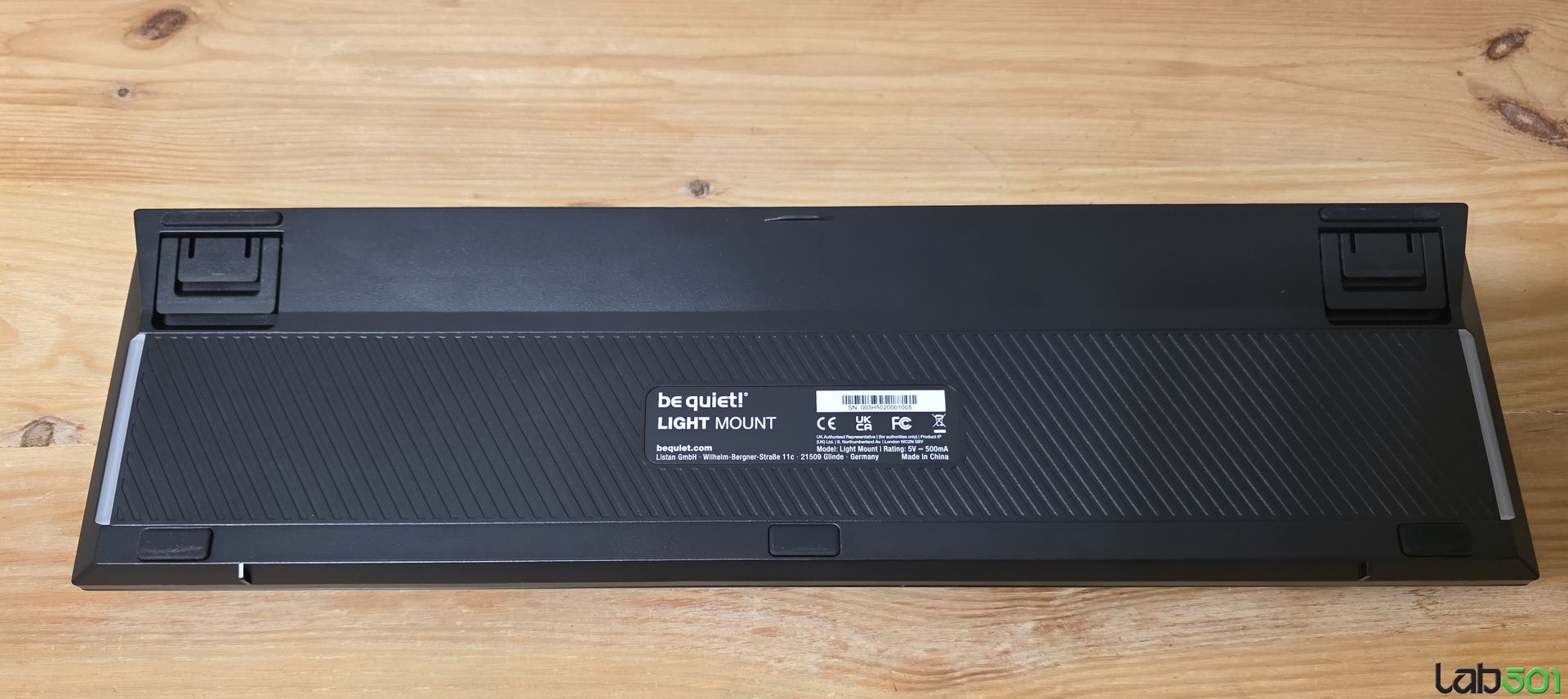 Tastatura are un aspect elegant, aerisit, acesta fiind pastrat si pe latura inferioara, unde gasim conectorul USB si cele doua seturi de picioruse. be quiet! Light Mount ofera trei unghiuri de tastare, in functie de modul in care utilizam, sau nu, cele doua seturi de picioruse.