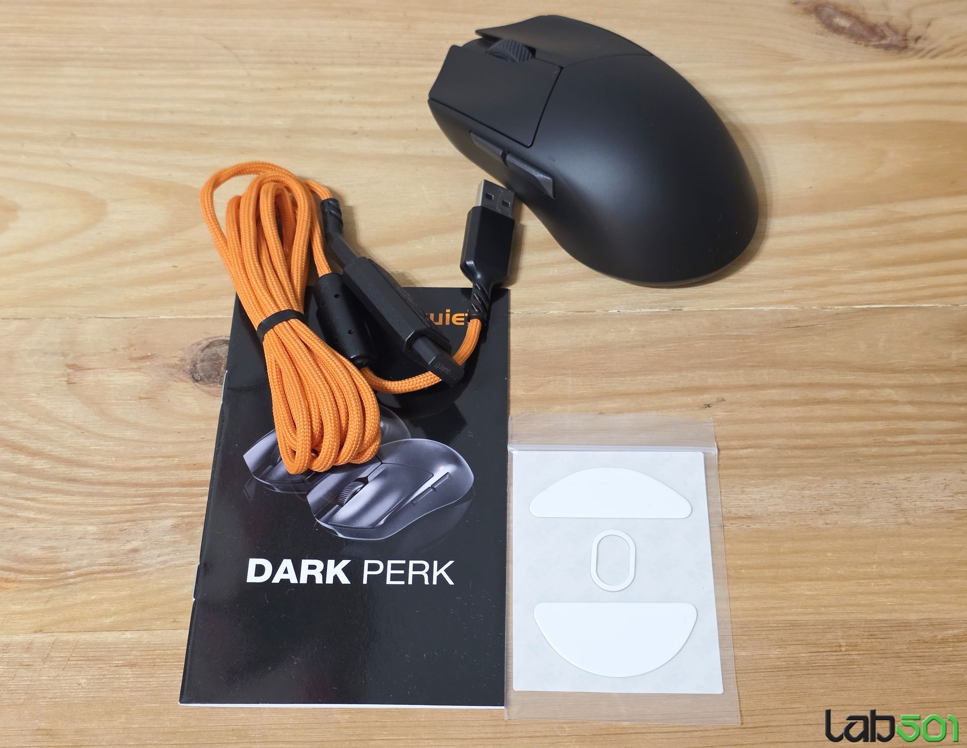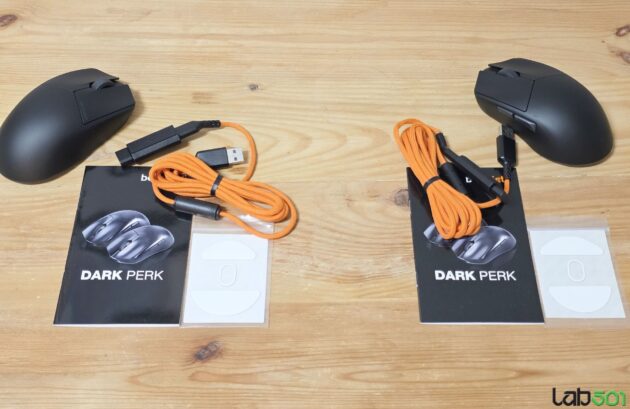 Ambalajele in care sunt livrati cei doi mousi sunt identice, in pachet fiind inclusi mouse-ul, un set de skate-uri PTFE de rezerva, un ghid rapid, cablul detasabil USB-> USB-C, un adaptor USB-C mama -> USB mama si receiver-ul WiFi. Cablul matisat este invelit intr-un material portocaliu extrem de moale, cablul fiind foarte usor si flexibil.