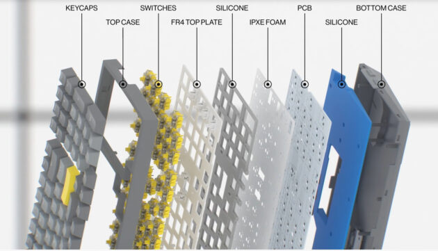 ENDORFY Celeris 1800 este o echipata cu switch-uri ENDORFY Yellow by Gateron si keycaps-uri DS PBT in format US-ANSI. Discutam despre o tastatura in format 1800 (100 key US-ANSI), construita din plastic, cu top plate din FR4, iluminare RGB si PCB hot swappable cu 5 pini.