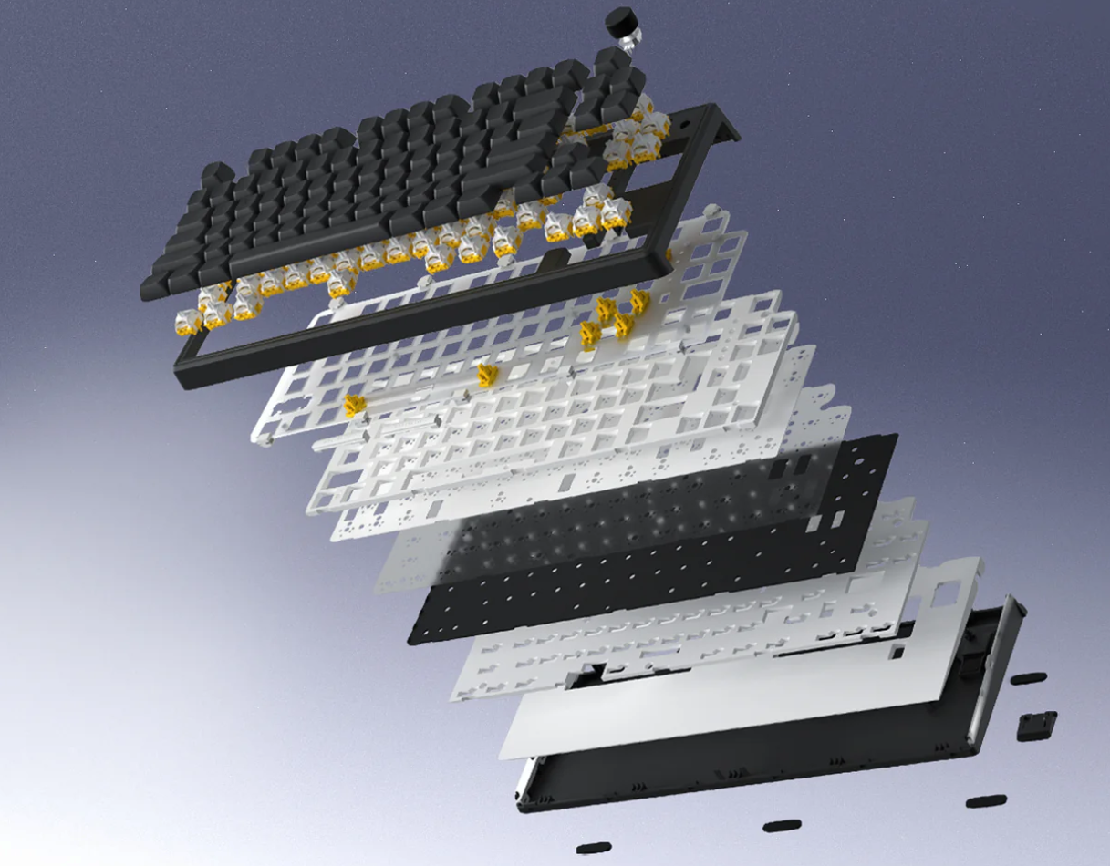 Tastatura se conecteaza la PC cu un cablu USB detasabil (8000Hz polling rate), producatorul incluzand un cablu matisat in pachet. De asemenea, avem la dispozitie conectivitate wireless 2.4GHz, sau Bluetooth 5.3, Hator Skyfall 80 MAG Ultima 8K Wireless oferind un total de 3 moduri de conectivitate. Tastatura are o structura interna tip gasket mount si este echipata cu mai multe straturi de material fonoabsorbant, pentru a oferi un sunet placut in timpul utilizarii.