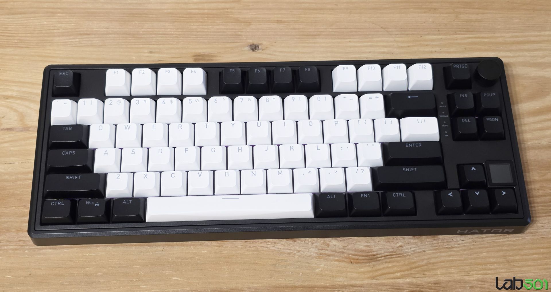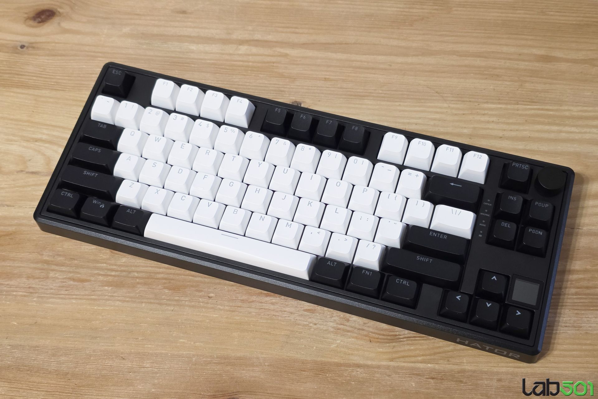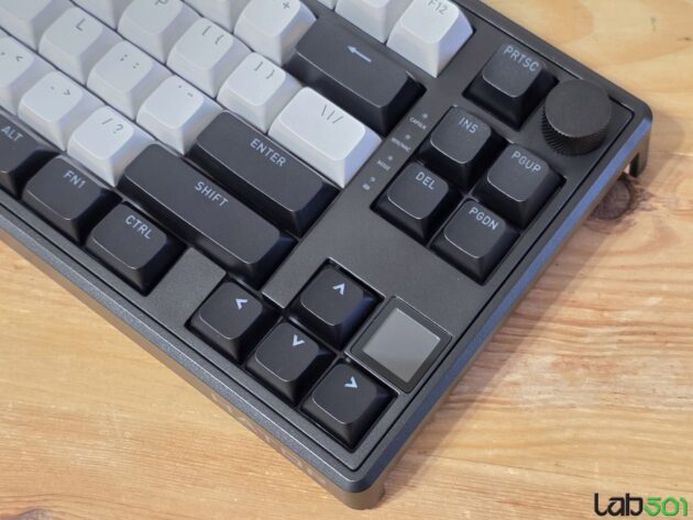 Desi discutam despre o tastatura compacta (pentru un model tenkeyless), Hator Skyfall 80 MAG Ultima 8K Wireless este echipata atat cu buton de volum, cat si cu un mic display LCD, pe care putem afisa informatii cum ar fi data, ora, sau nivelul de incarcare al acumulatorului.