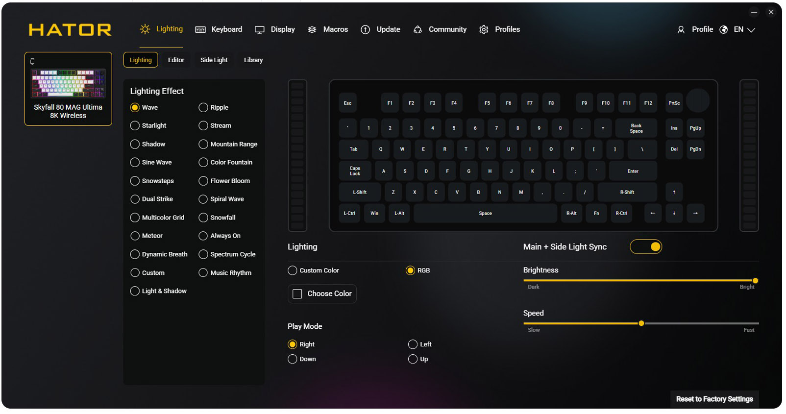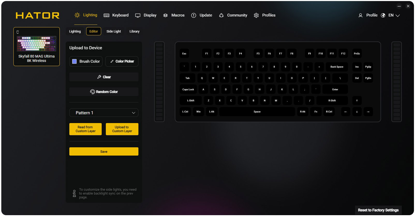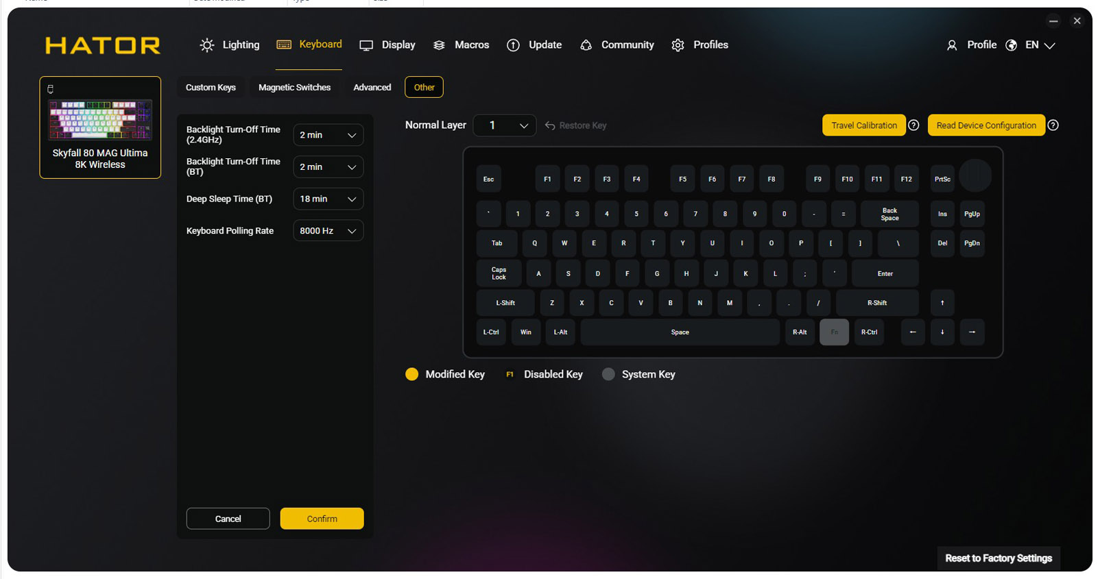 Din acest motiv, in cazul tastaturilor magnetice utilitarul pus la dispozitie de producator joaca un rol mult mai important decat in cazul tastaturilor mecanice clasice. In cazul de fata, discutam despre Hator SyncHUB, un utilitar complex, care ne permite sa programam tastatura in orice mod ne dorim, sa definim layer-e, sa alocam orice functii dorim oricarei taste, s.a.m.d.