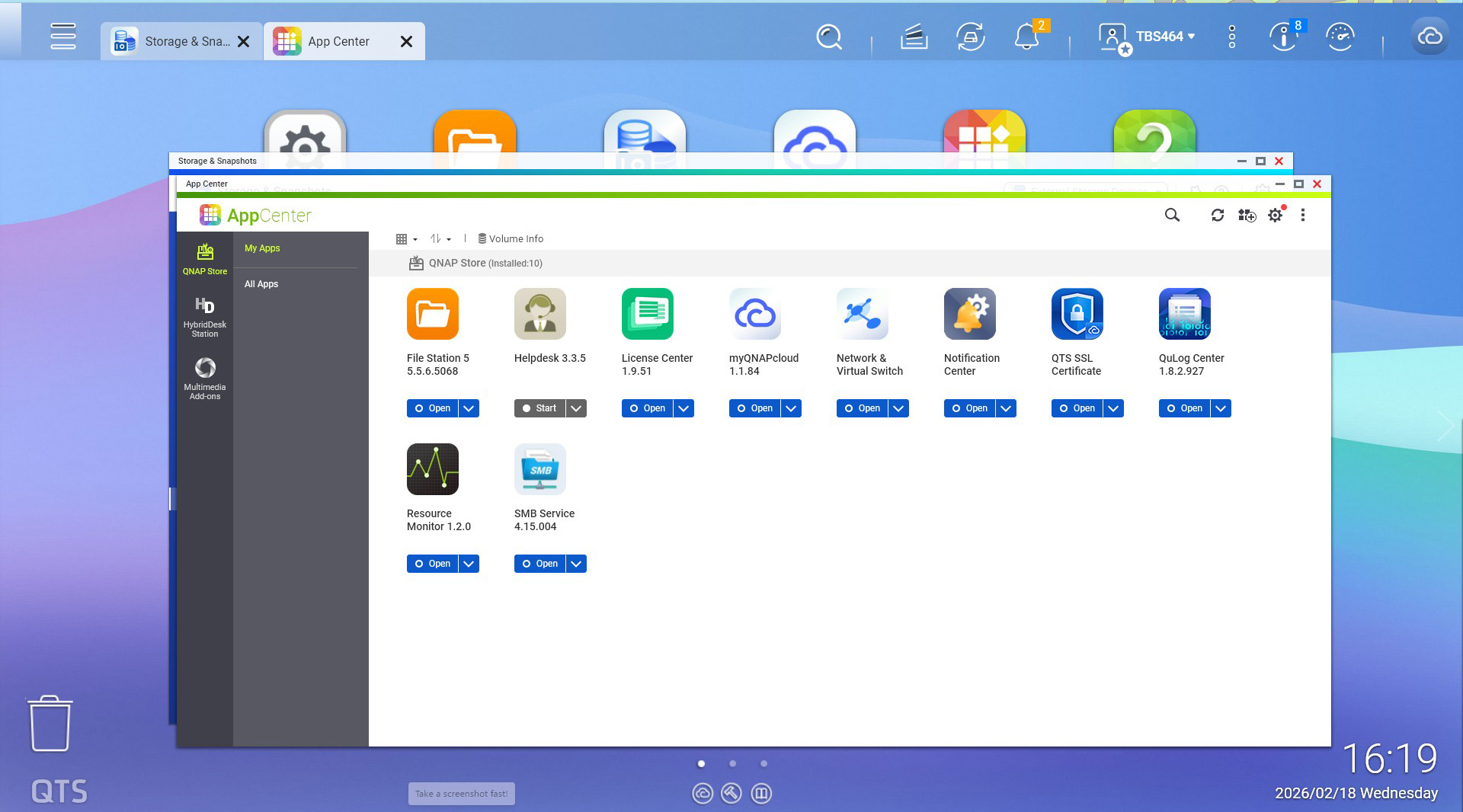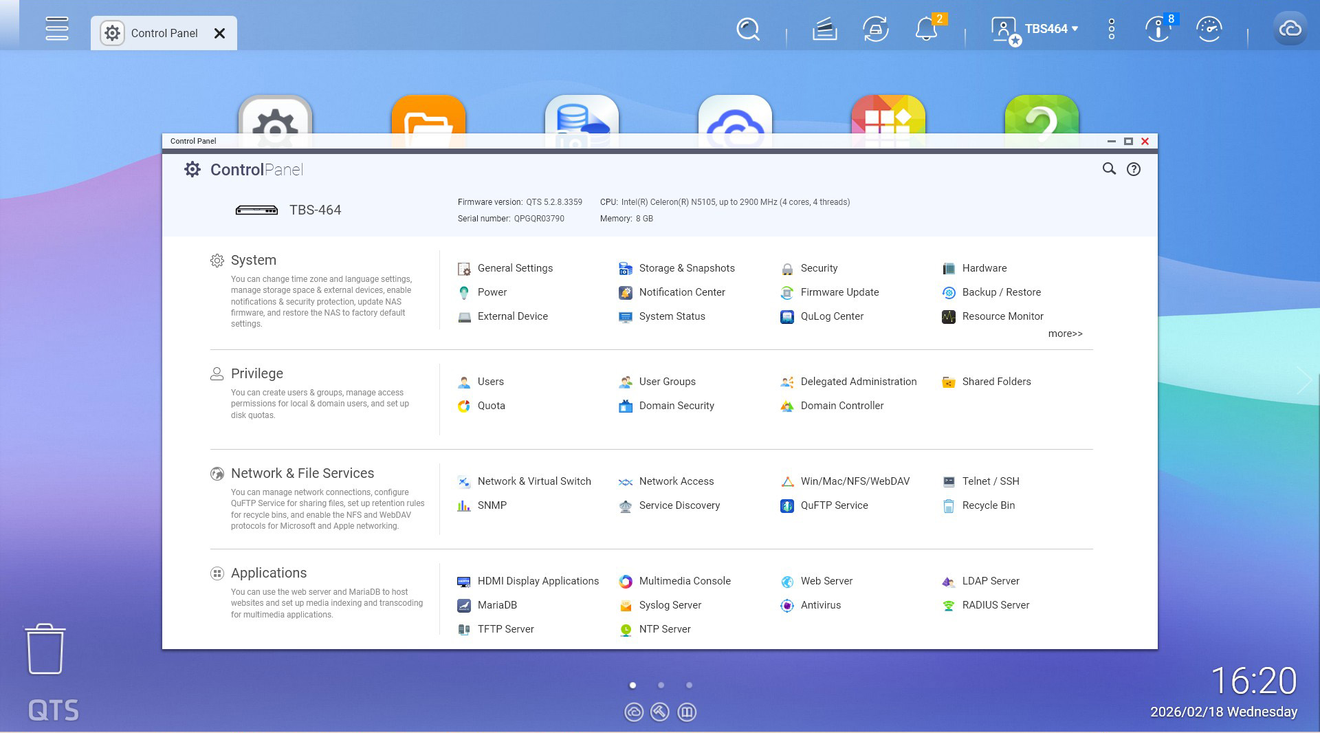 QTS a ajuns intre timp la versiunea 5.2.8, fiind unul dintre cele mai complexe si bine la punct sisteme de operare pentru NAS pe care l-am vazut pana acum, indiferent daca discutam despre configurare, securitate sau aplicatiile care pot fi instalate. Putem sa il folosim pentru back-up, putem rula masini virtuale, putem sa il folosim ca media server, putem sa il conectam direct la un monitor si sa utilizam o tastatura si un mouse legate direct la el.