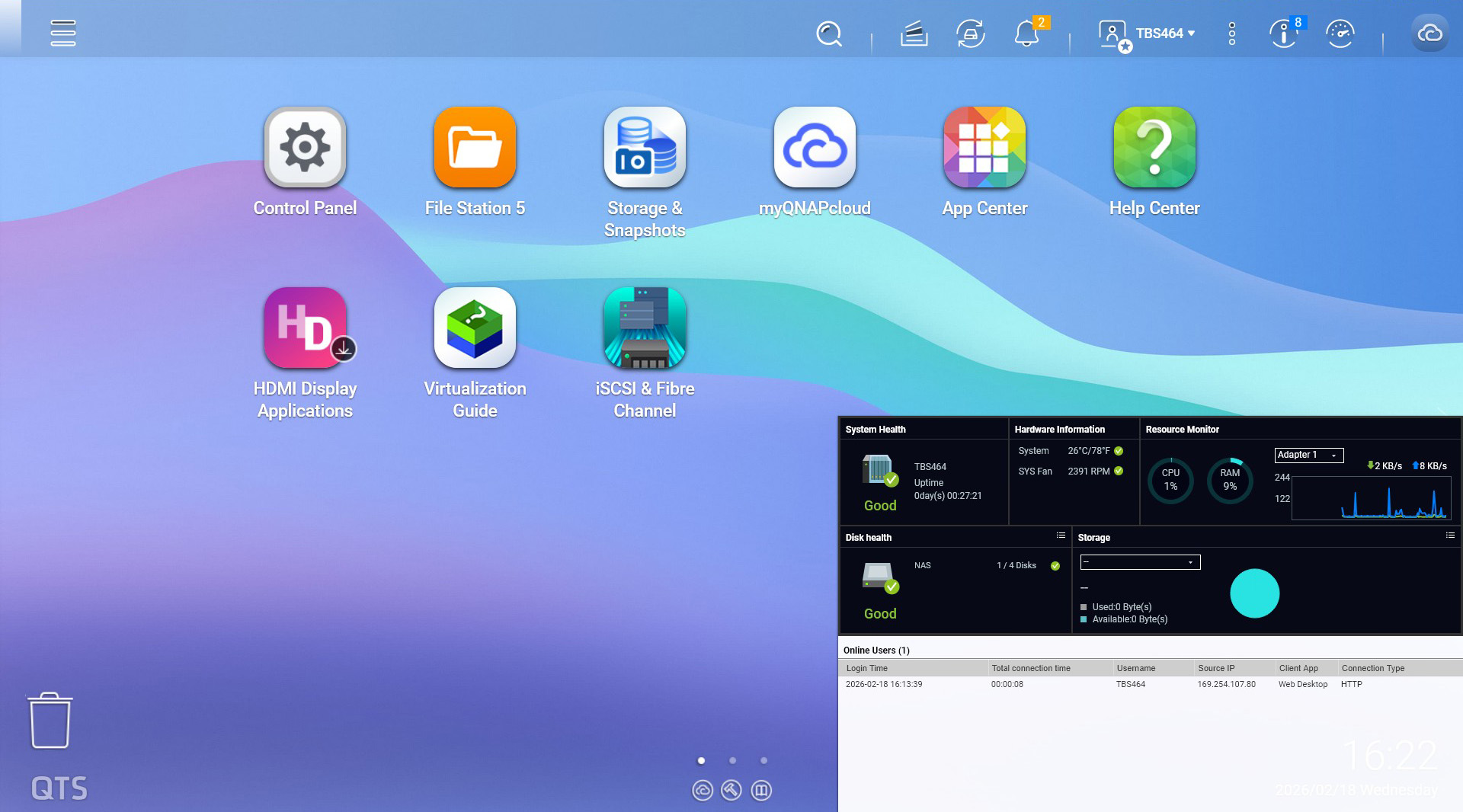 QNAP TBS-464 ofera multiple optiuni de configurare, putand fi accesat atat prin QTS, in browser, sau folosind sistemul de operare propriu, QuTS hero.