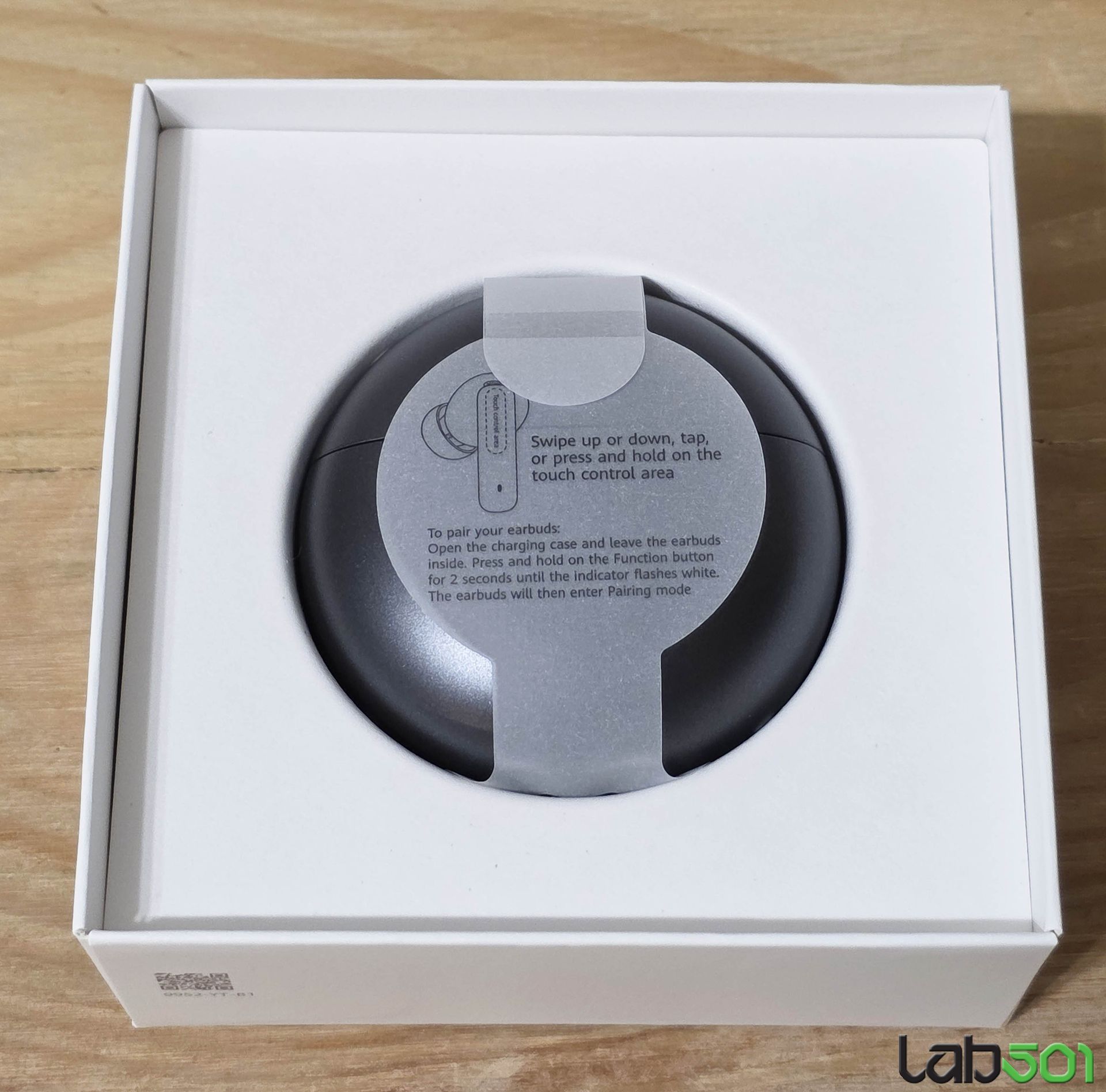 HUAWEI FreeBuds 7i sunt livrate intr-un ambalaj elegant, in pachet fiind incluse castile, cutia pentru transport / incarcare, manualul utilizatorului, precum si un cablu USB->USB-C pentru incarcare. Nu in ultimul rand, pe langa garniturile din silicon (marime M) dispuse pe casti, mai gasim in pachet inca trei marimi (XS, S si L), utilizatorul avand practic 4 optiuni la dispozitie pentru a gasi tipul de garnitura care i se potriveste cel mai bine, perechea corecta de garnituri oferind practic si un nivel pasiv de noise cancelling.