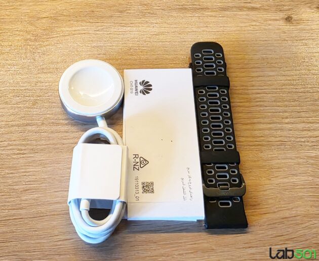Suna interesant, nu-i asa? Bun… haideti sa vedem cum arata. In primul rand, ceasul este livrat intr-o cutie neagra eleganta, in pachet fiind ambalate cu atentie ceasul, incarcatorul wireless, certificatul de garantie, un Quick Start Guide si o curea din fluoroelastomer. Din fabrica, ceasul este livrat impreuna cu o curea speciala din tesatura HUAWEI AirDry, utilizatorii primind practic doua curele in pachet.
