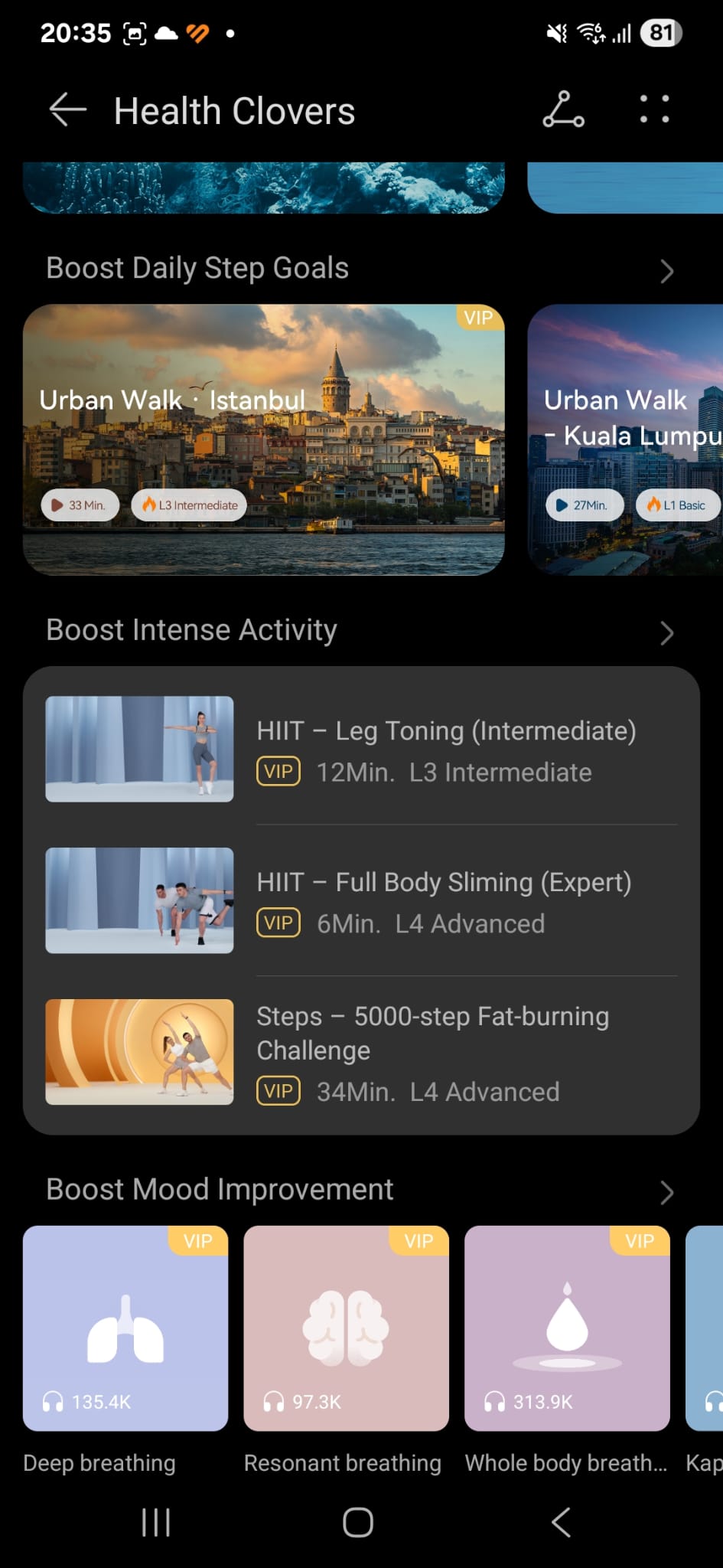 Avem ce-i drept o noutate, introducerea diferentei intre caloriile active (cele consumate efectiv in timpul antrenamentului) si numarul total de calorii (care include si caloriile consumate de corpul nostru pentru functiile de baza, indiferent de antrenament). Totusi, as prefera un mod ceva mai extins pentru fitness, mai ales in conditiile in care aceasta activitate se pozitioneaza in top 5 activitati desfasurate de posesorii de ceasuri HUAWEI WATCH GT5, conform statisticilor HUAWEI, dupa mers, ciclism, alergare si drumetie.