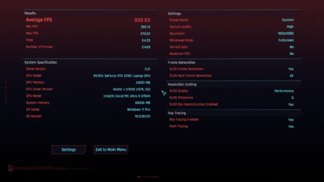 Ei bine, NVIDIA GeForce RTX 5090 Laptop este cea mai puternica placa video pentru notebook-uri disponibila in momentul de fata si una dintre cele mai puternice placi video in general, iar acest lucru nu pare sa se schimbe prea curand, cel putin nu pana in momentul lansarii unei noi generatii. Desigur, conteaza si procesorul folosit, in cazul de fata Intel Core Ultra 9 275HX, insa RTX 5090 duce greul in jocuri in cazul de fata, chiar si in Full HD.