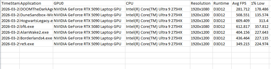Desigur, am vazut asta inca de anul trecut, insa lucrurile nu s-au schimbat, ba chiar din contra, NVIDIA au adus noi tehnologii, cum ar fi DLSS 4.5 (si in curand DLSS 5), iar jocurile noi integreaza firesc tehnologiile de supersampling, rezultatul fiind un laptop care ofera un framerate cuprins intre 200 si 600 fps, chiar si in cele mai moderne jocuri.