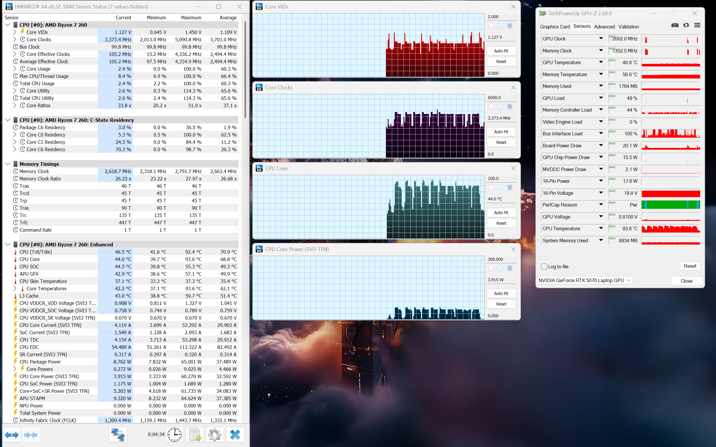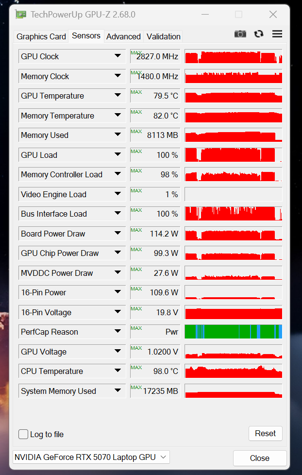 Acer Nitro V 16 AI ofera o autonomie medie pentru un notebook echipat cu RTX 5070, cu aproape 3 ore de lucru, respectiv peste 2 ore de gaming departe de priza. La finalul suitei noastre de teste, procesorul ajunge la 98 oC, nucleul placii grafice inregistreaza o temperatura maxima de 79.5 oC, in timp ce punctul cel mai fierbinte de pe carcasa nu trece de 59.1 oC.