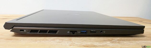 Pe laterala stanga gasim conectorul RJ-45, un conector USB, card reader-ul si conectorul audio, in timp ce laterala dreapta gazduieste doi conectori USB si doua led-uri de stare. Tastatura acopera aproape toata latimea laptop-ului, fiind vorba despre formatul 1800. Nu in ultimul rand, avem la dispozitie un touch-pad multi-gesture generos dimensionat.