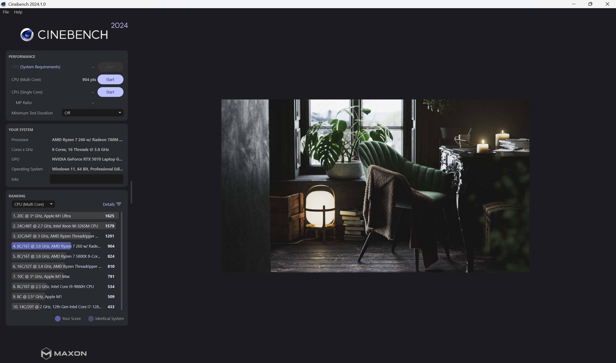 Procesorul ofera o performanta echilibrata, pozitionandu-se intre Intel Core Ultra 185H si AMD Ryzen 9 6900HS. Nu discutam despre un varf de gama, dar nici nu avem aceasta pretentie in acest sgement de pret, varfurile de gama fiind prezente in zilele noastre pe notebook-uri care costa peste 15000 RON.