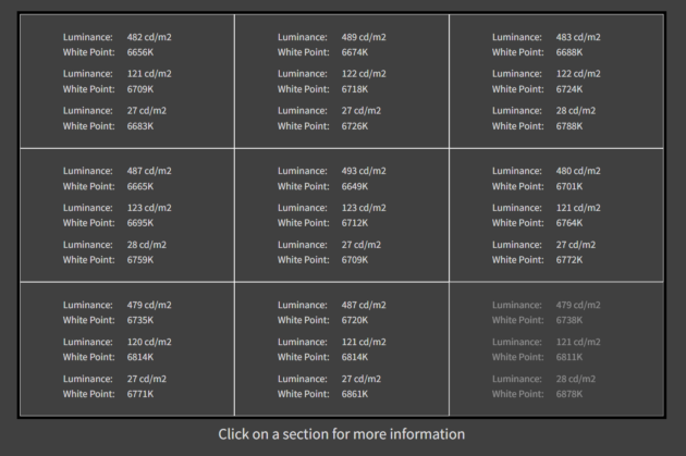 Lenovo Legion 5 este echipat cu un panou OLED produs de EverDisplay Optronics, cu o diagonala de 15.1″, rezolutie 2560×1600 si o rata de refresh de 165Hz. Acesta ofera un nivel de alb excelent (~492 cd/m2) si un contrast absolut, profund, specific panourilor OLED. Uniformitatea este excelenta, iar reproducerea culorilor (DeltaE mediu 0.4) recomanda display-ul atat pentru gameri, cat si pentru creatorii de continut.
