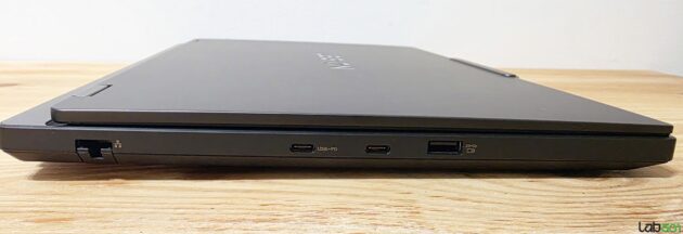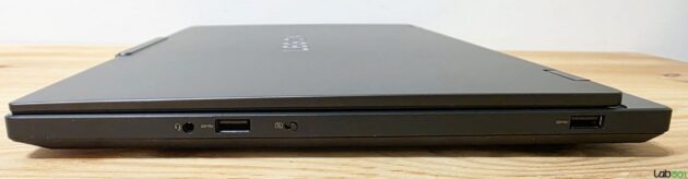 Totusi, in cazul de fata, conectorul HDMI si conectorul alimentatorului sunt dispuse pe latura din spate. Pe latura stanga avem la indemana conectorul RJ-45, cei doi conectori USB-C si un conector USB, in timp ce latura dreapta gazduieste 2 conectori USB, conectorul audio si butonul cu ajutorul caruia actionam obturatorul electronic.