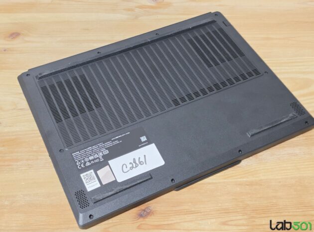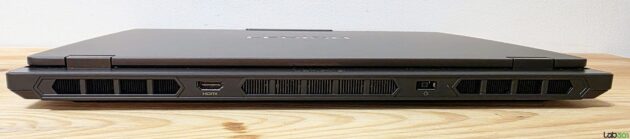Desigur, Legion 5 pastreaza limbajul estetic implementat de Legion Pro 7 / Legion Pro 5, principalele diferente fiind capacul inferior, construit din PC-ABS, respectiv lipsa iluminarii RGB. La fel ca si in cazul acestora insa, majoritatea conectorilor de pe spatele notebook-ului au fost mutati inapoi pe laterale, aceasta decizie fiind luata pentru a maximiza peformanta sistemului de racire Legion Cold Front Hyper.