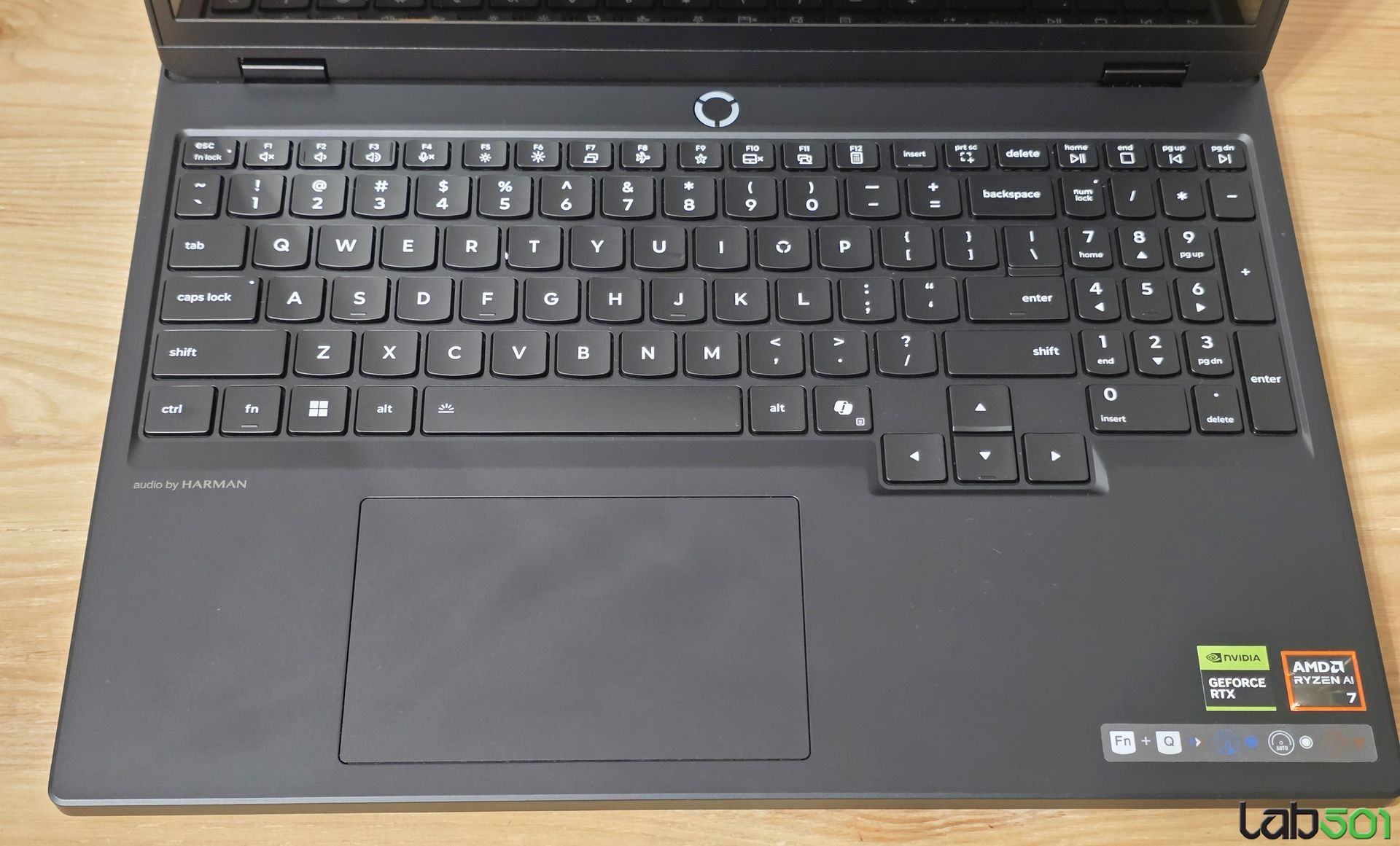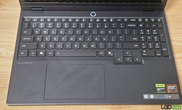Lenovo Legion 5 15AKP10 este echipat cu excelenta tastatura Lenovo TruStrike, in format full, cu o cursa a tastelor de 1.6mm, respectiv cu sistemul de iluminare RGB in 24 de zone, denumit Lenovo Spectrum. Touchpad-ul din mylar masoara 75 x 120 mm, fiind compatibil cu tehnologia Precision TouchPad (PTP).