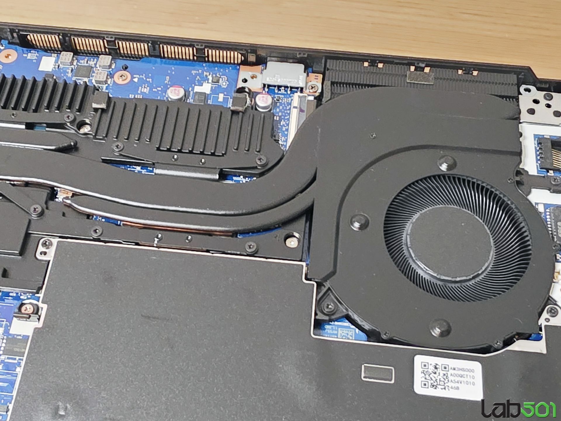Integrand placi video pana la RTX 5070 Mobile inclusiv, utilizarea unui vapour chamber nu mai este necesara, Lenovo Legion 5 utilizand sistemul de racire Legion Cold Front Hyper. Asta inseamna ca procesorul si nucleul grafic sunt racite cu ajutorul unui heatpipe comun, respectiv cate un heatpipe dedicat pentru fiecare, in timp ce etajul de alimentare al nucleului grafic, respectiv etajul de alimentare al procesorului, beneficiaza de radiatoare dedicate.