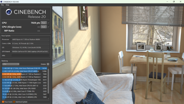 Lenovo Legion 5 este echipat cu un procesor AMD Ryzen AI 7 350, care ofera performante similare cu ceea ce vedem in cazul modelului Intel Core Ultra 9 185H. Practic, avem de-a face cu o performanta echilibrata, mai mult decat suficienta pentru marea majoritate a utilizatorilor.
