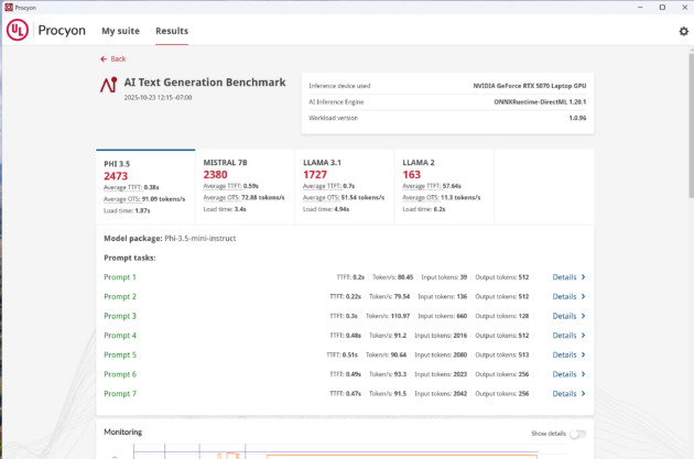 Chiar daca discutam despre ComfyUI, AUTOMATIC1111 sau EasyDifussion, despre generare locala de imagini sau antrenarea unor chat-boti locali, combinatia intre Intel Core Ultra 9 285H si NVIDIA GeForce RTX 5070 este una reusita, rezultatul fiind un echilibru atent studiat intre greutate, dimensiuni si performanta.
