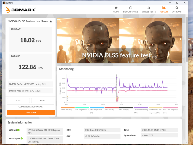 Chiar daca nu avem de-a face cu un notebook de gaming, Lenovo Yoga Pro 9i Aura Edition fiind gandit in general pentru profesionisti, avem totusi un GeForce RTX 5070 sub capota, ceea ce inseamna ca dupa o zi intreaga in care am folosit laptop-ul pentru editare video, grafica 3D sau editare foto cu functii generative AI, putem sa ne relaxam linistiti seara in jocurile preferate, pe un display OLED de 16″. Performanta este excelenta pentru un notebook din seria Yoga, acesta putand fi utilizat fara probleme pentru CS2, de exemplu, iar daca discutam despre titluri pretentioase, avem la dispozitie avantajele aduse de DLSS 4.