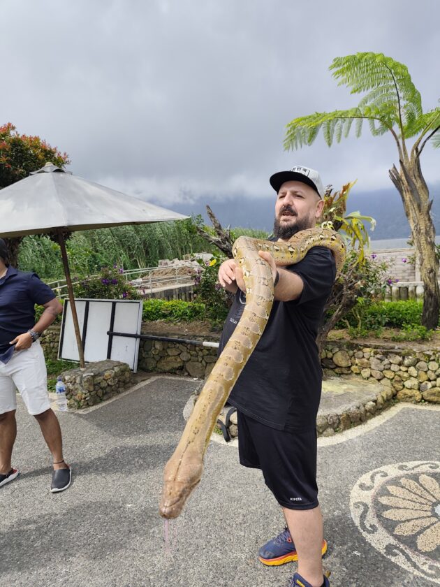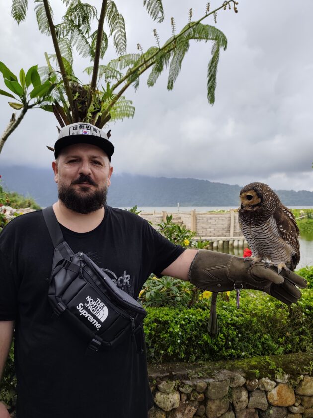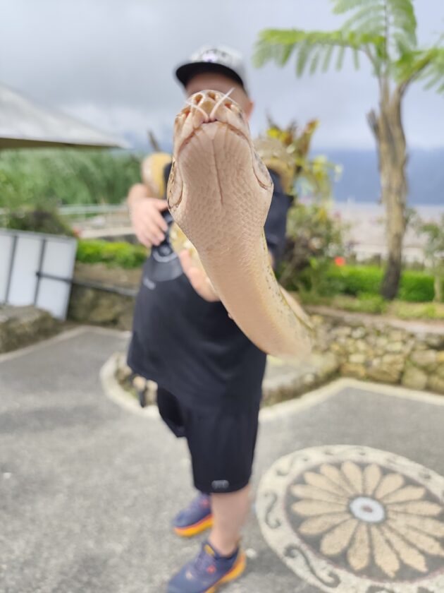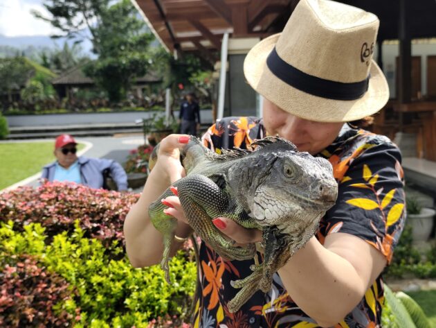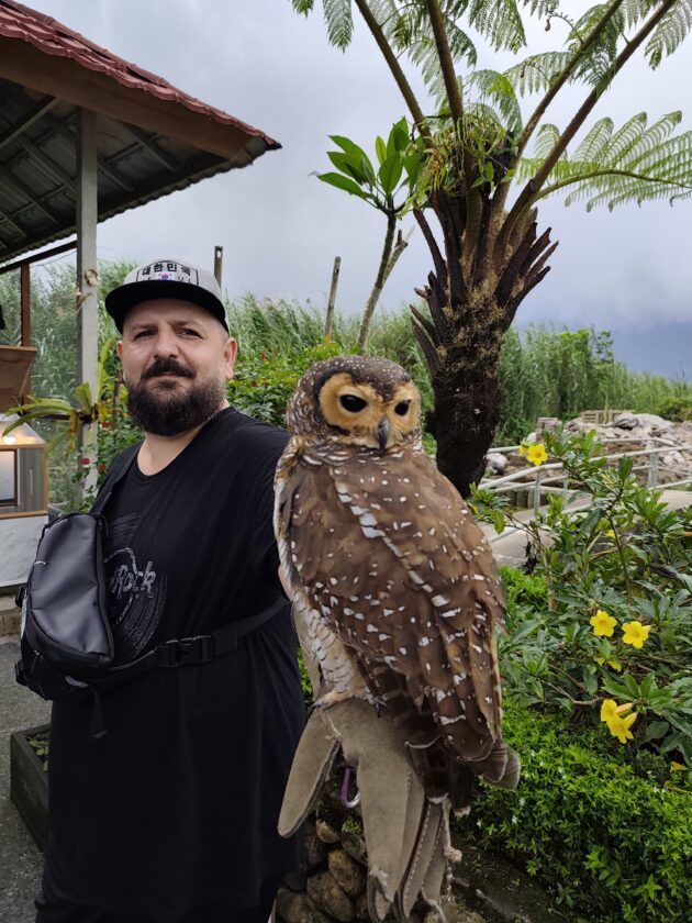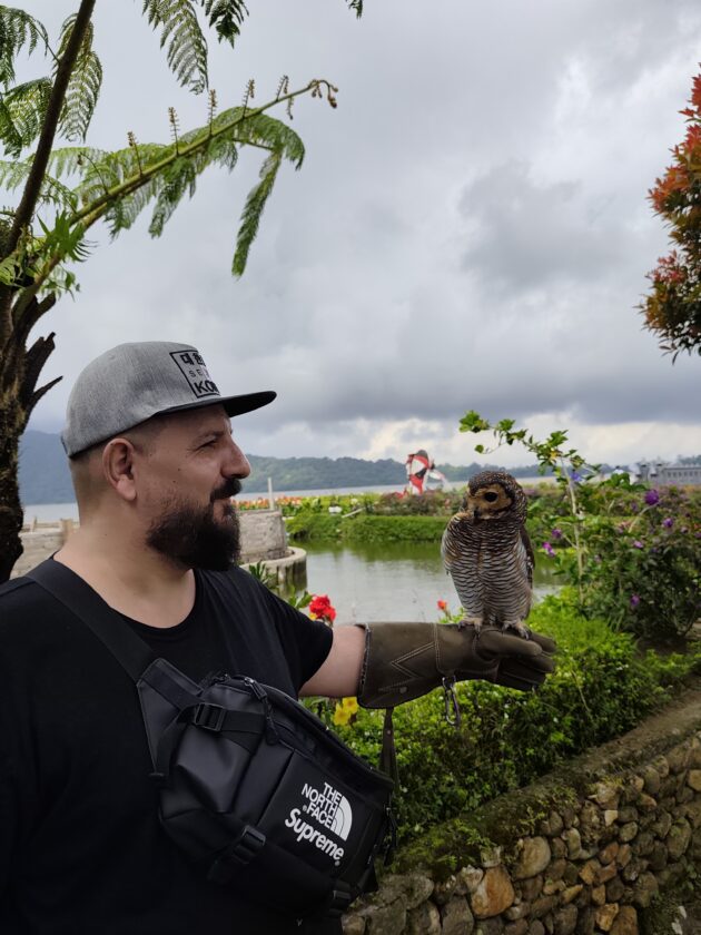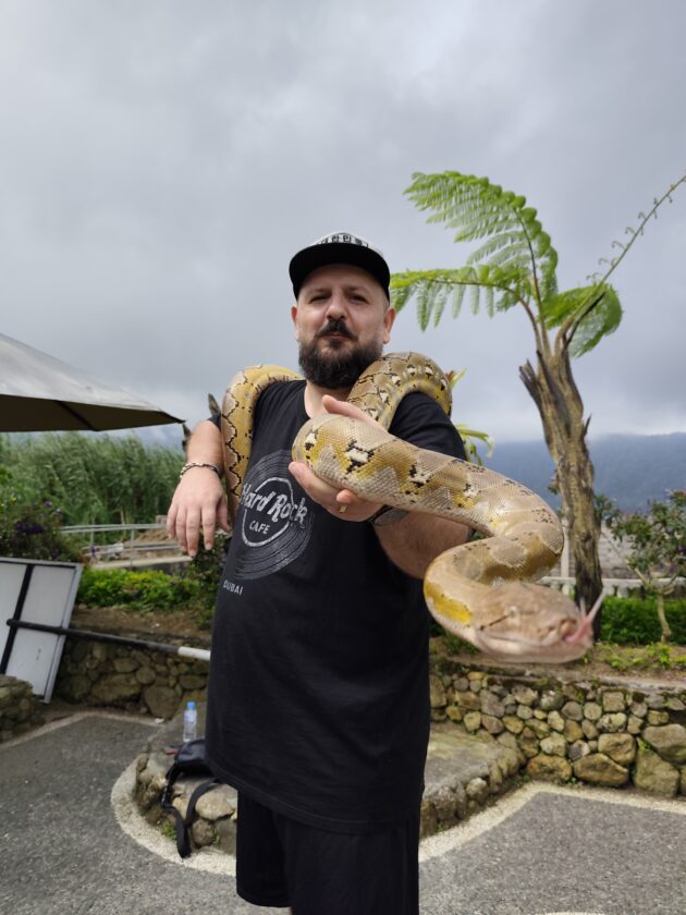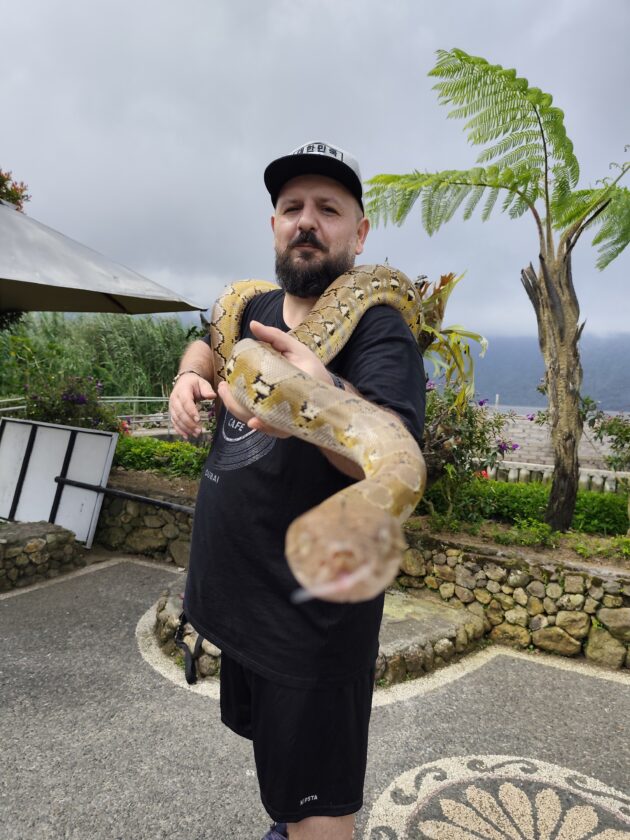 De altfel, aici locuiesc si mai multi prieteni blanosi, cu pene sau cu solzi, alaturi de care te poti fotografia pentru o suma modica. Ne-am bucurat sa ne reintalnim cu Mickey, Luwakul prietenos, cu bufnitele, pitonii si liliecii uriasi. Iar dupa ce am obosit de la atata dragalasenie, am luat si o mica gustare la terasa de langa. Ca sa nu povestim iarasi despre sarmale pe drum…