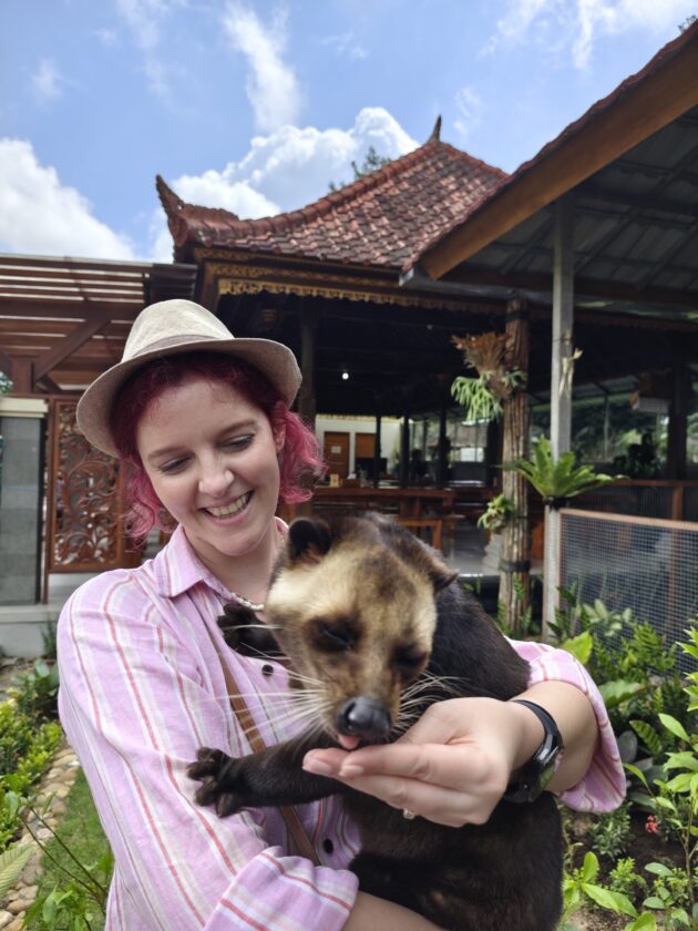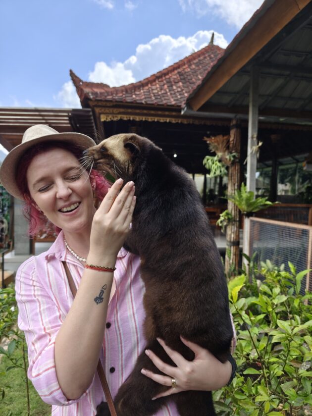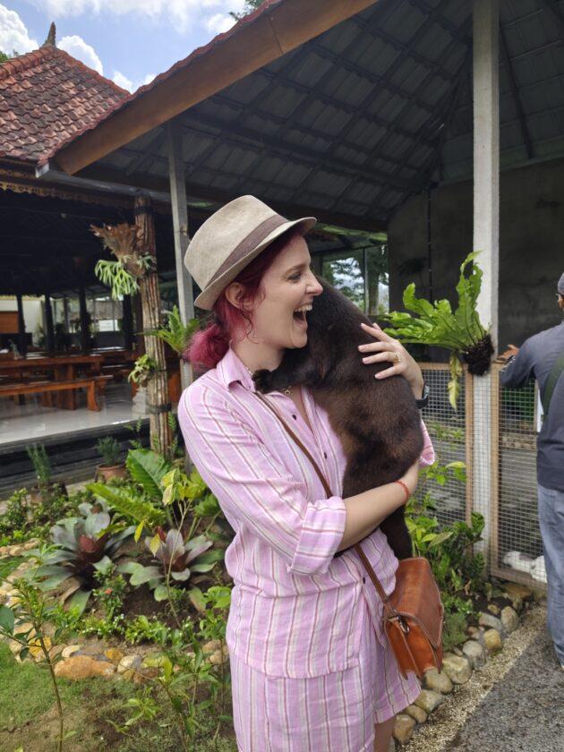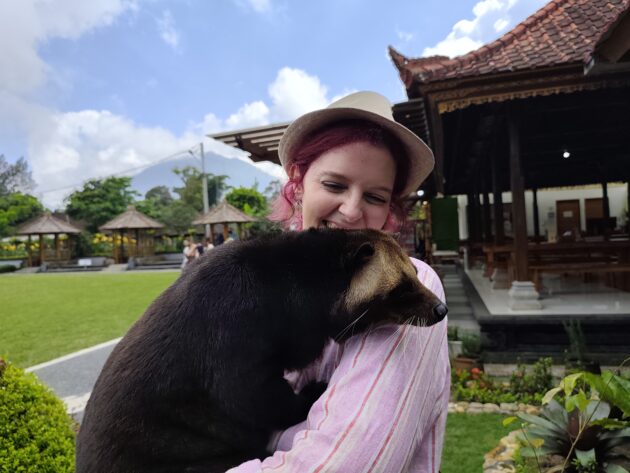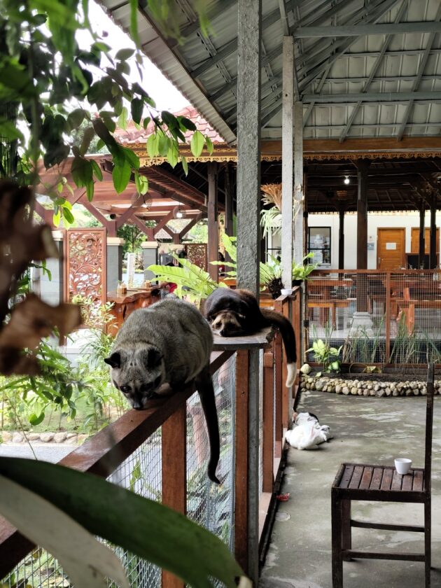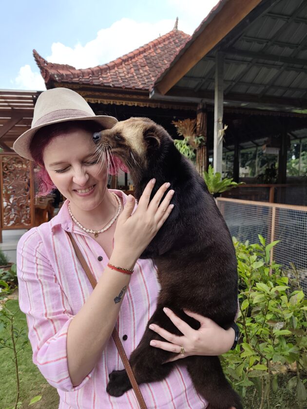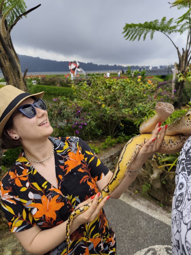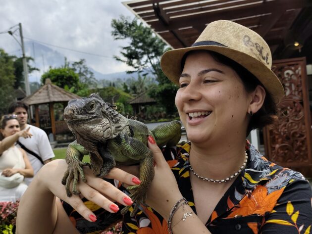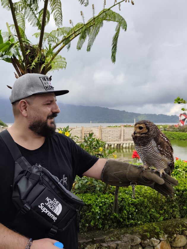 De altfel, aici locuiesc si mai multi prieteni blanosi, cu pene sau cu solzi, alaturi de care te poti fotografia pentru o suma modica. Ne-am bucurat sa ne reintalnim cu Mickey, Luwakul prietenos, cu bufnitele, pitonii si liliecii uriasi. Iar dupa ce am obosit de la atata dragalasenie, am luat si o mica gustare la terasa de langa. Ca sa nu povestim iarasi despre sarmale pe drum…