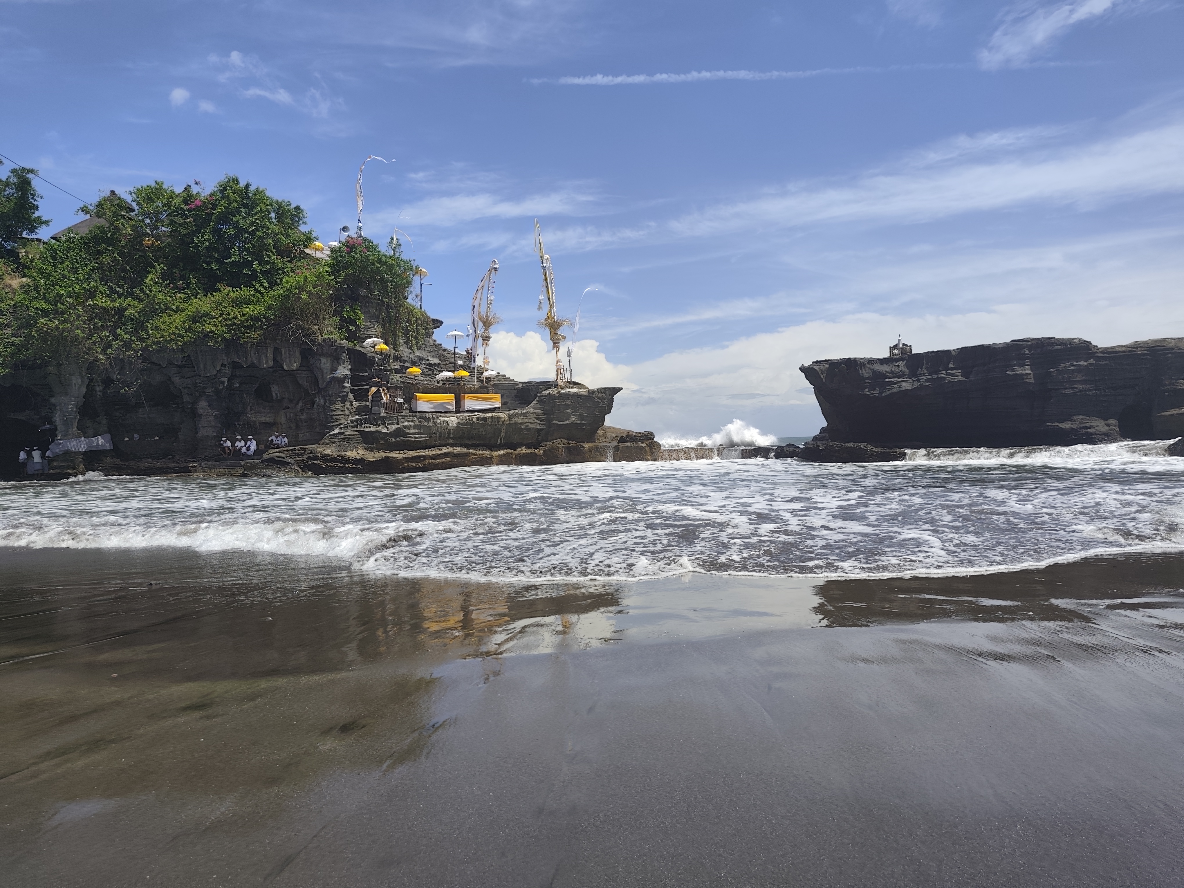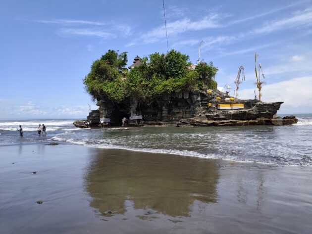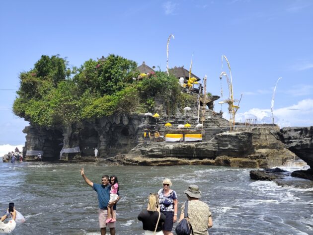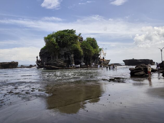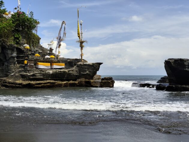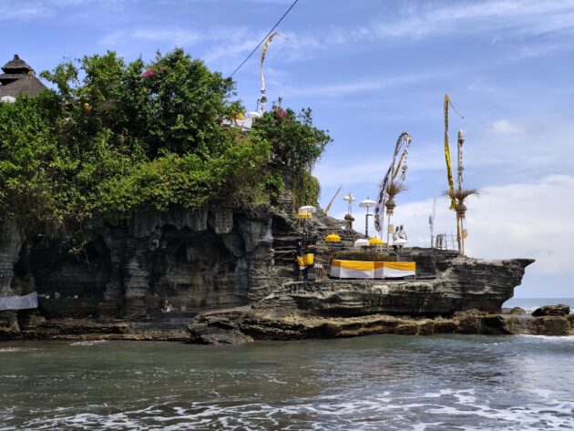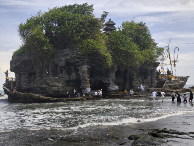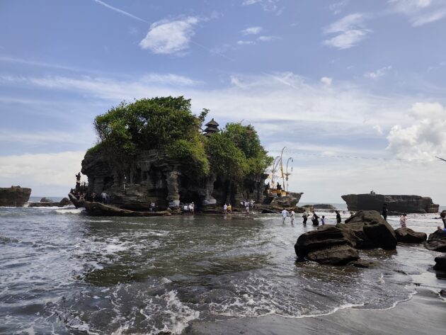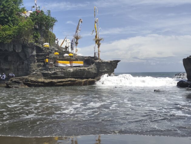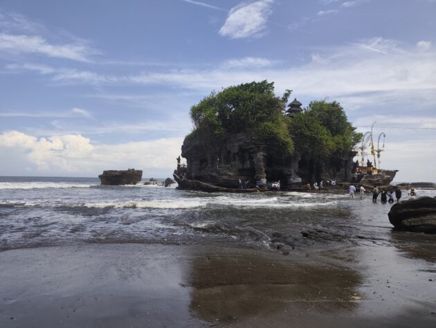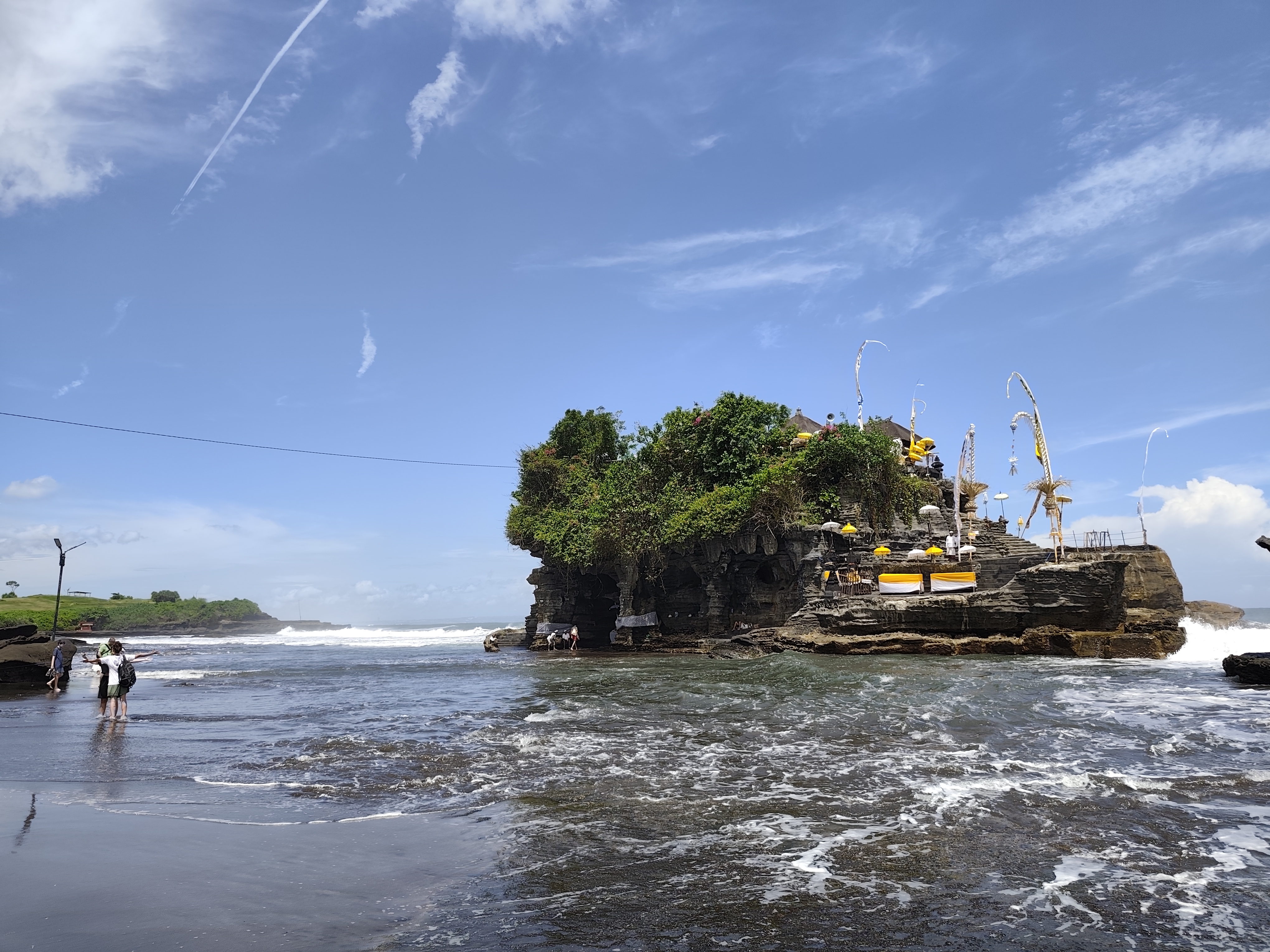 Anul trecut am vizitat pentru prima oara templul Tanah Lot, dar publicasem deja Anatomia, drept urmare nu apucasem sa va povestesc despre el. Ei bine, in sud-vestul insulei, in districtul Kediri din regiunea Tabanan, exista o formatiune stancoasa distincta, pozitionata in mare. Aici se gaseste unul dintre cele mai vechi locuri de pelerinaj pentru practicantii hinduismului din Bali, mai precis Pura Tanah Lot, sau templul Tanah Lot.