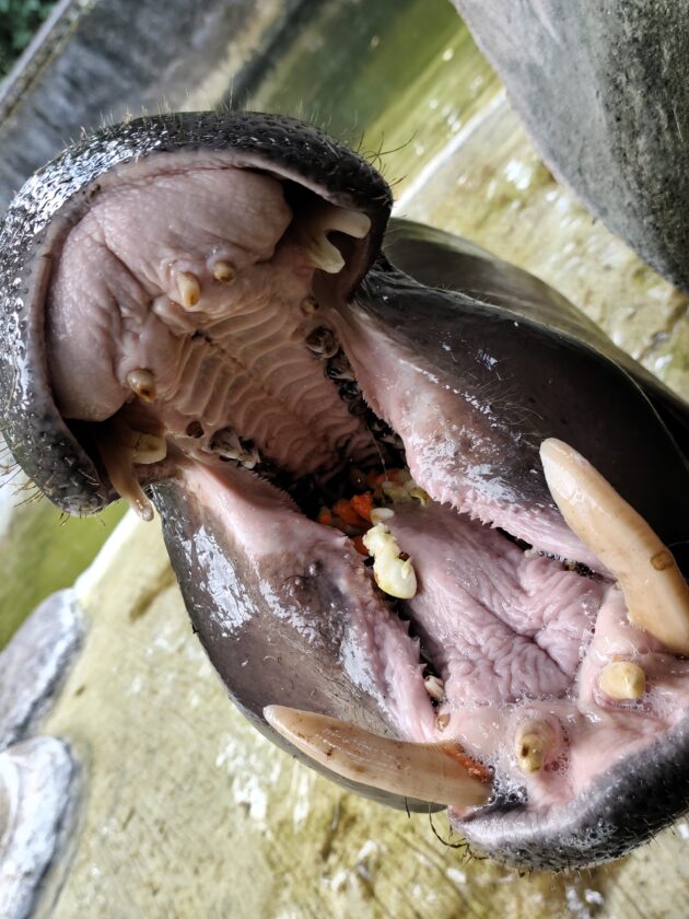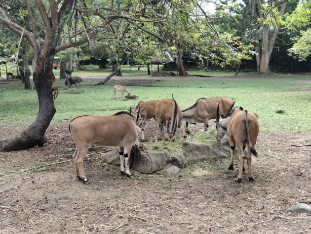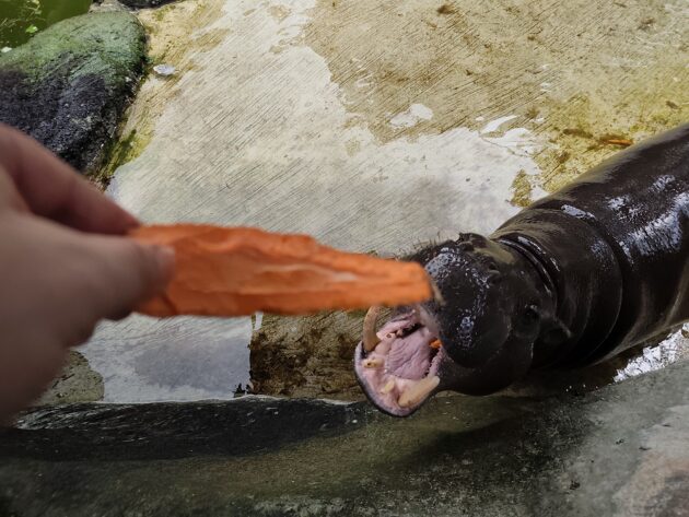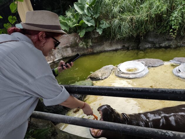 Mai mult decat atat, in anumite cazuri interactiunea cu oamenii este incurajata, existand mai multe puncte unde poti achizitiona o galetusa cu mancare (morcovi, banane, etc.) pentru a hrani animalele din mana. Noi am hranit hipopotamii pitici si elefantii, programul de hranire al carnivorelor din masina special amenajata nefiind potrivit cu ora la care am vizitat noi parcul.