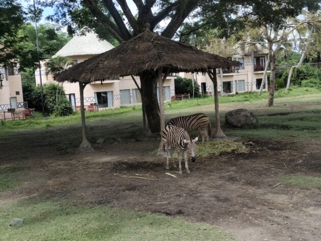 Zona de safari este impartita in diverse parcele, separate intre ele prin garduri de pana la 10m inaltime, in jurul habitatului carnivorelor. Aici gasim zona carnivorelor, unde putem admira lei, tigri si ursi in semi-libertate, respectiv zona ierbivorelor, unde isi fac veacul o serie intreaga de antilope, girafe, bivoli africani, rinoceri, zebre si alte mamifere din aceeasi familie, aceastea avand la dispozitie o suprafata impresionanta.