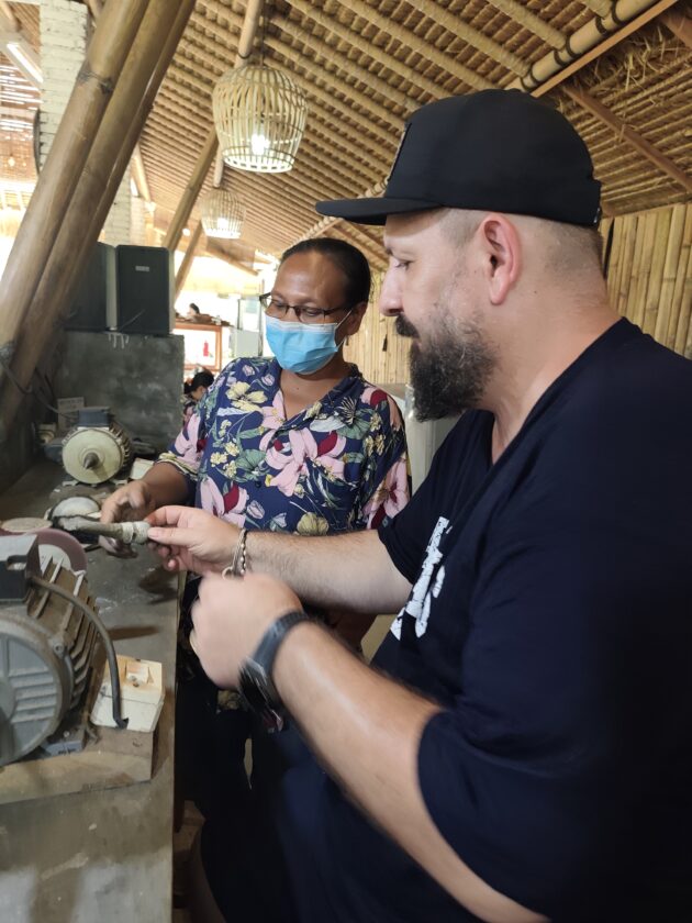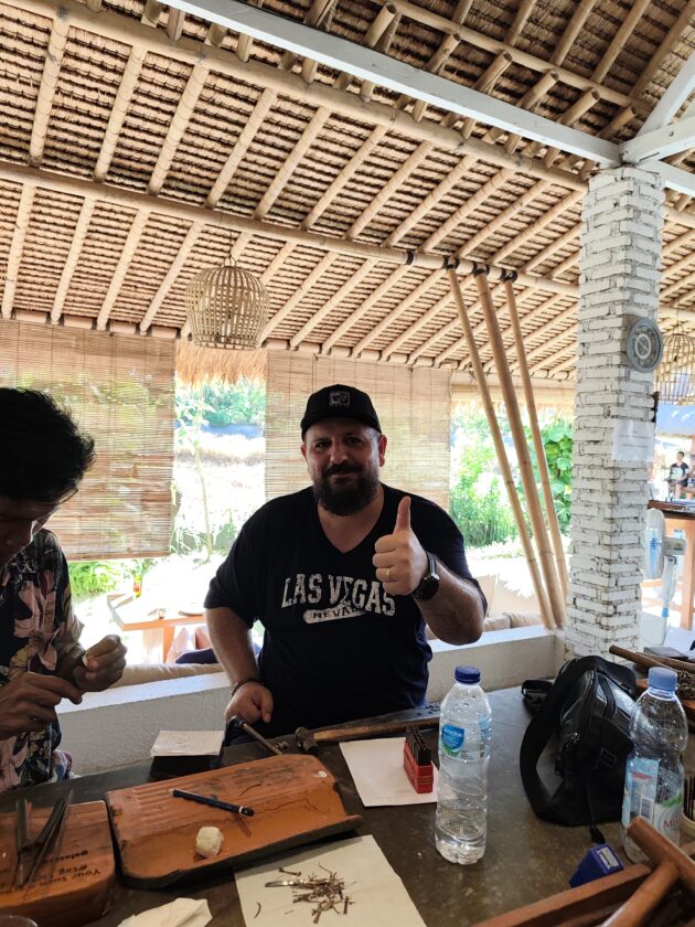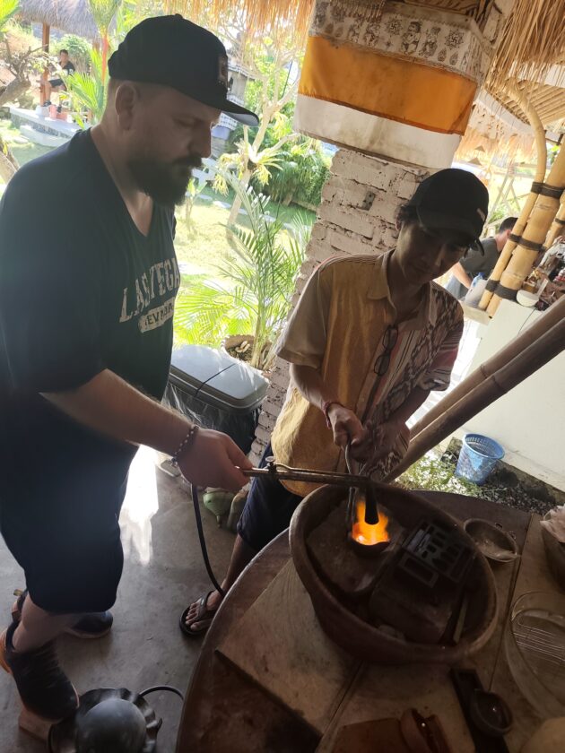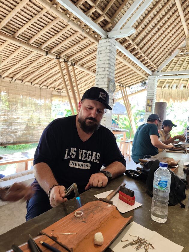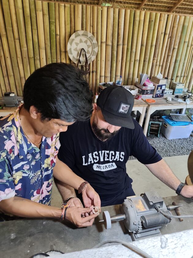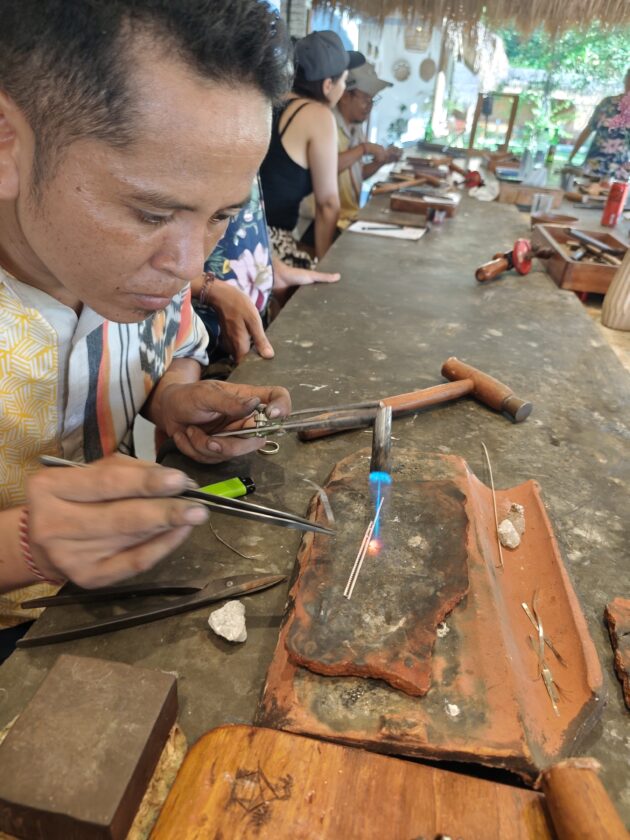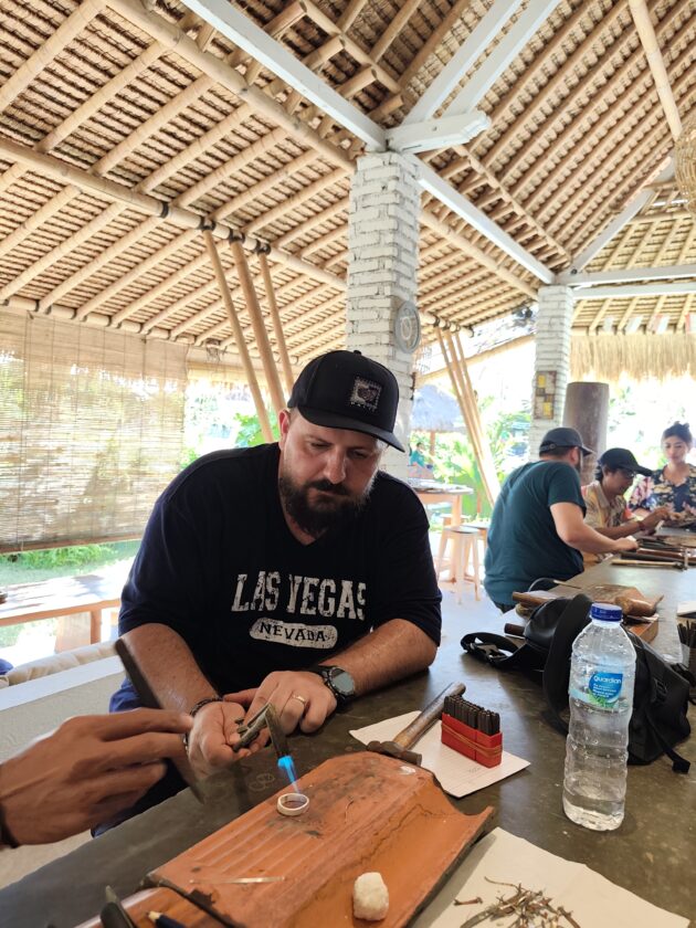 Dupa ce anul trecut ne-am facut inele la Pande Silver Sidemen, anul acesta a venit momentul sa repetam experienta la Alas Arun, complexul fiind pozitionat mult mai aproape de zona in care ne aflam noi. Asa cum stiam deja, fiecare membru al grupului primeste 7g de argint, iar apoi trebuie sa isi aleaga modelul de inel (sau pandantiv, bratara, etc.), fiind intampinat de un mester argintar care il va ajuta si ghida pe durata intregului proces.