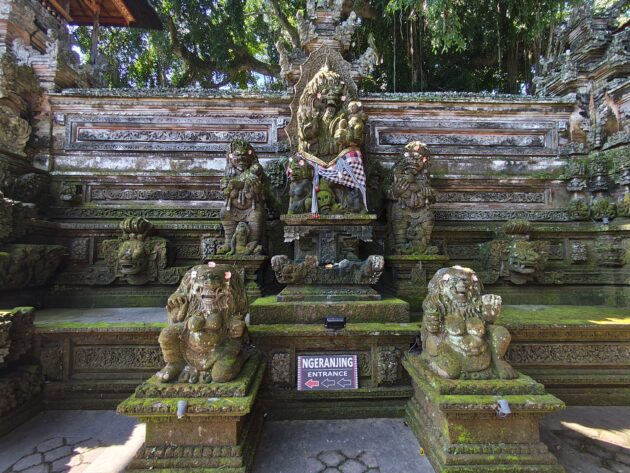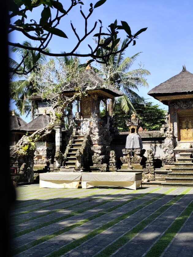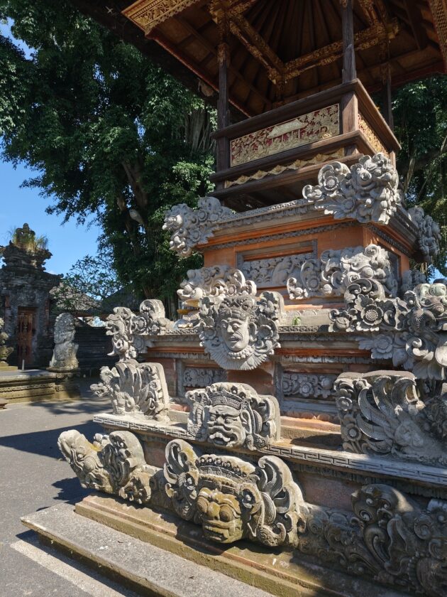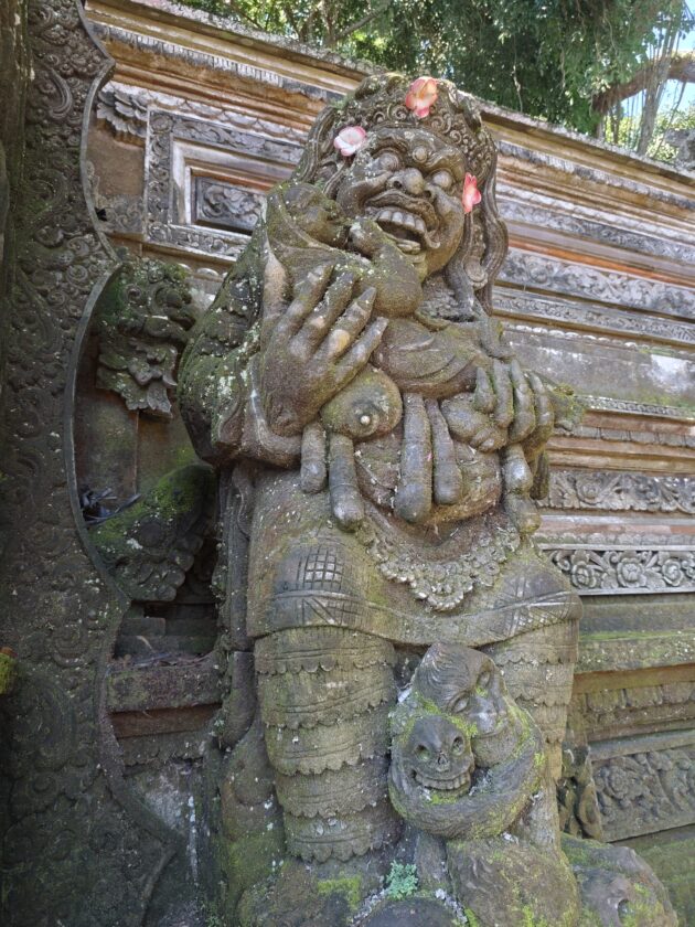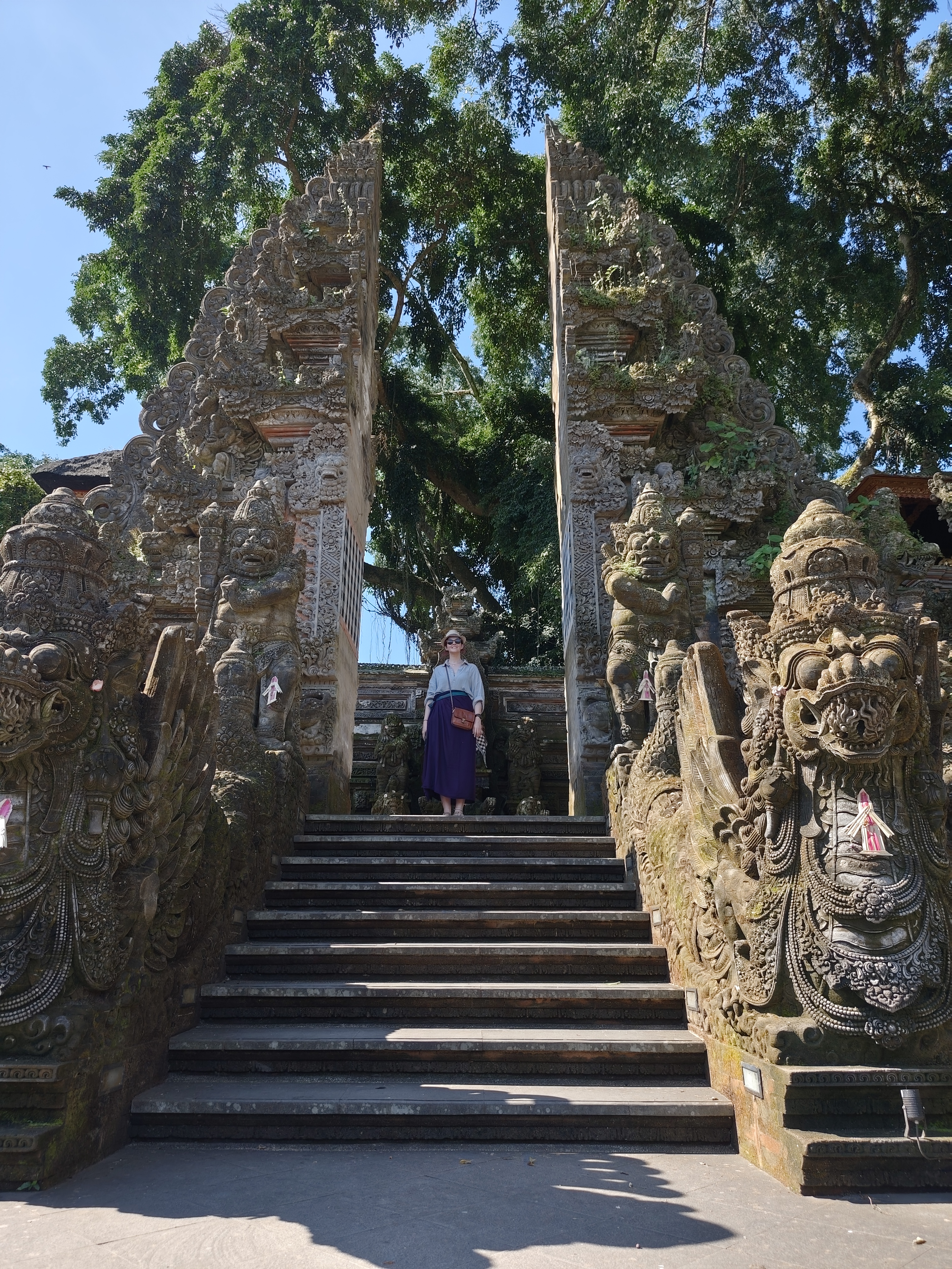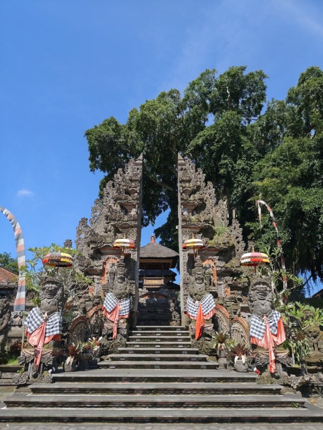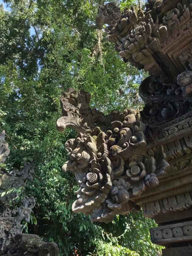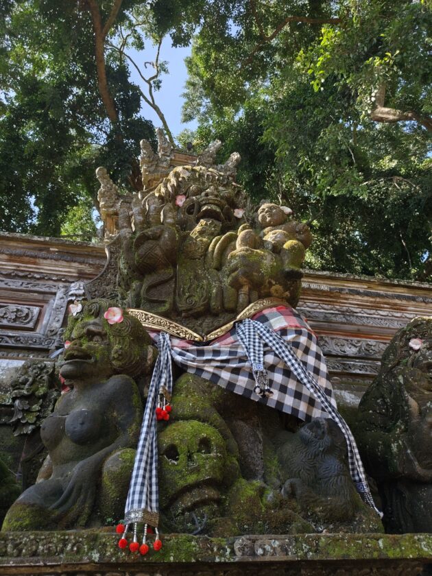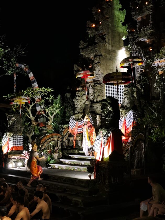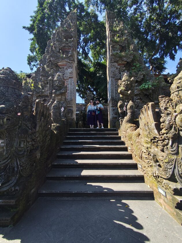 Am aterizat in Bali dupa-amiaza, ajungand seara la cazare si am hotarat sa incepem excursia cu o zi de relaxare in Ubud, unde eram cazati. Astfel, dupa ce am inceput ziua cu o cafea la Lazy Cats Caffe si am profitat de piscinele cazarii, ne-am indreptat agale catre Pura Dalem, cel mai apropiat templu de noi, pe care l-am vizitat pe timp de zi si am cumparat bilete la spectacolul de seara. Asa cum v-am mai povestit si cu alte ocazii, in cadrul templelor au loc si spectacole saptamanale, cum ar fi Barong dance, Legong dance sau Kekack fire dance, dansuri traditional Balineze care simbolizeaza de obicei lupta dintre bine si rau.