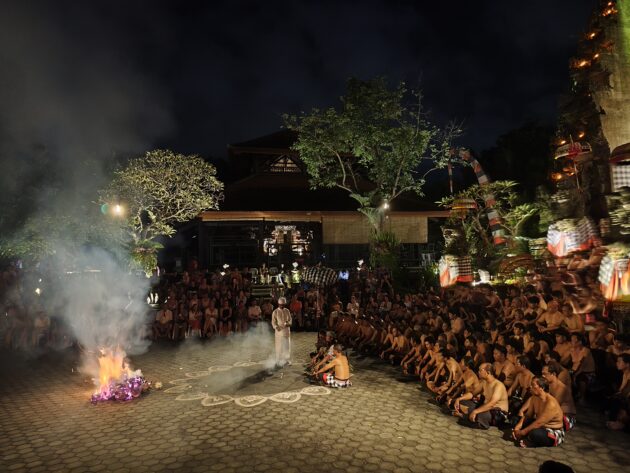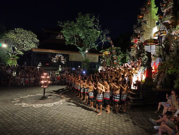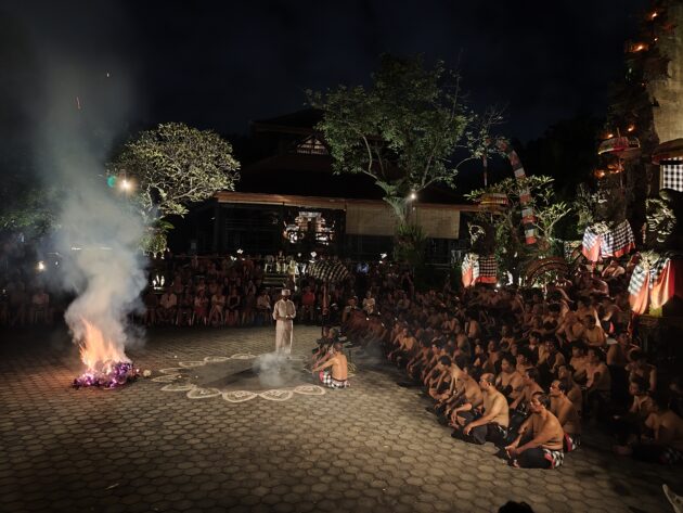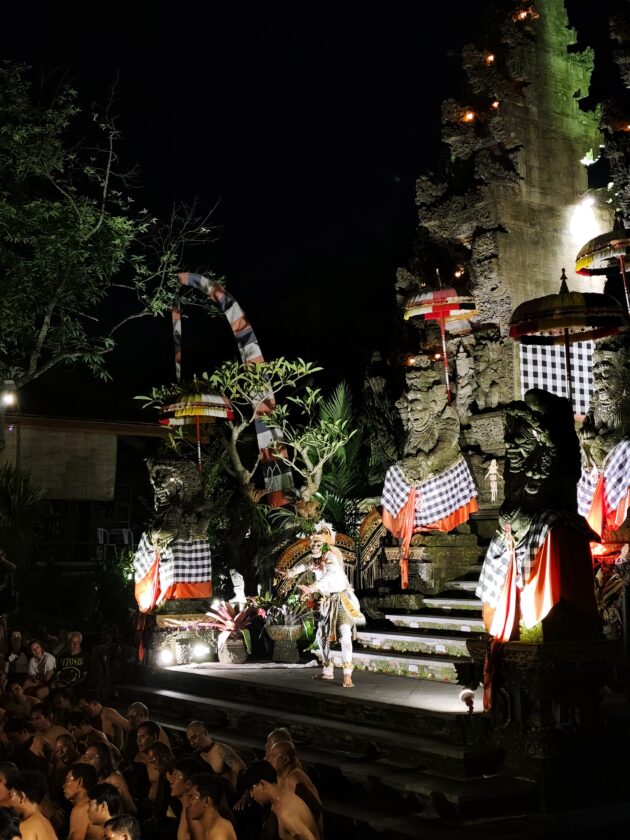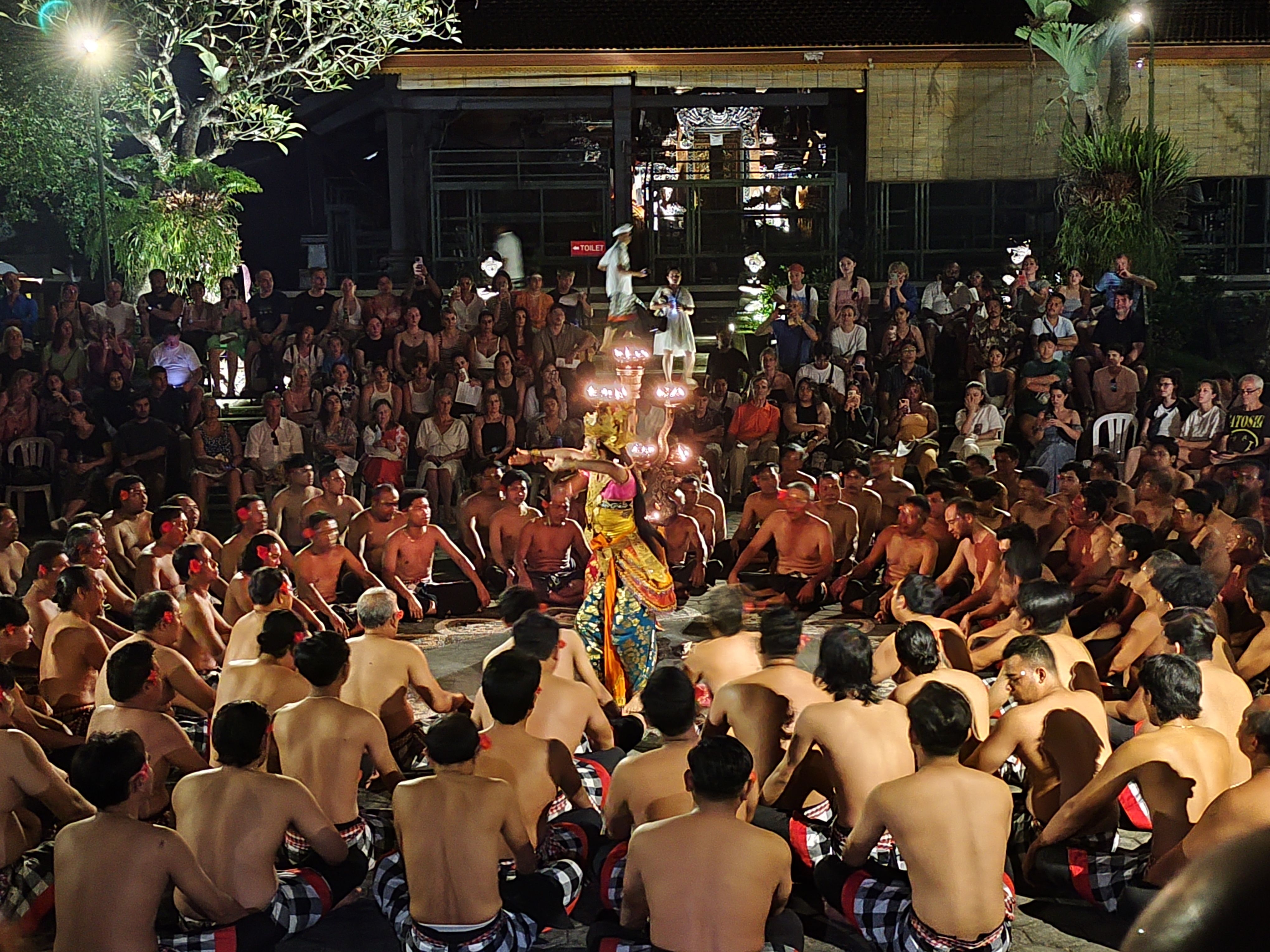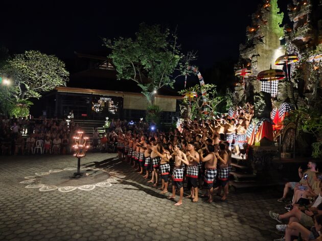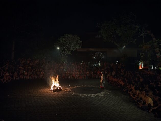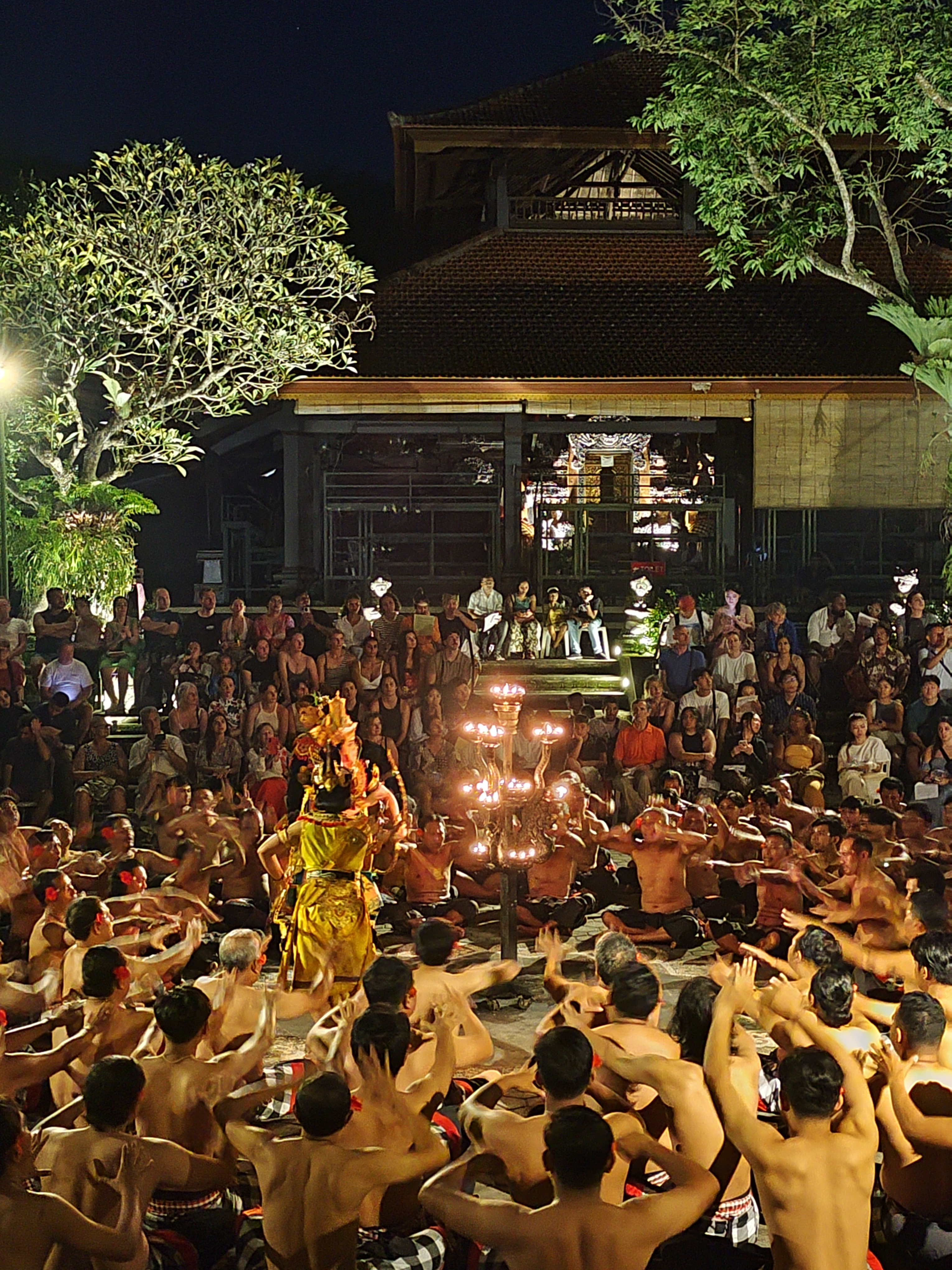 Kekak fire dance este o adaptare teatrala a poemului Ramayana, pe fundalul unei transe ritualice, in care un grup de aproximativ 50 de barbati stau in cercuri concentrice in jurul sursei de lumina si scandeaza ritmic “chak ke-chak ke-chak ke-chak”. De altfel, aceasta a fost si una dintre cele mai dificile scene de fotografiat, in special cand si-a facut aparitia mancatorul de carbuni incinsi, spre finalul spectacolului.