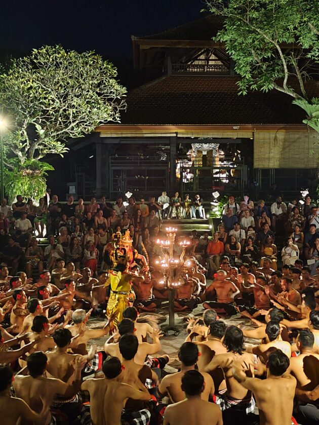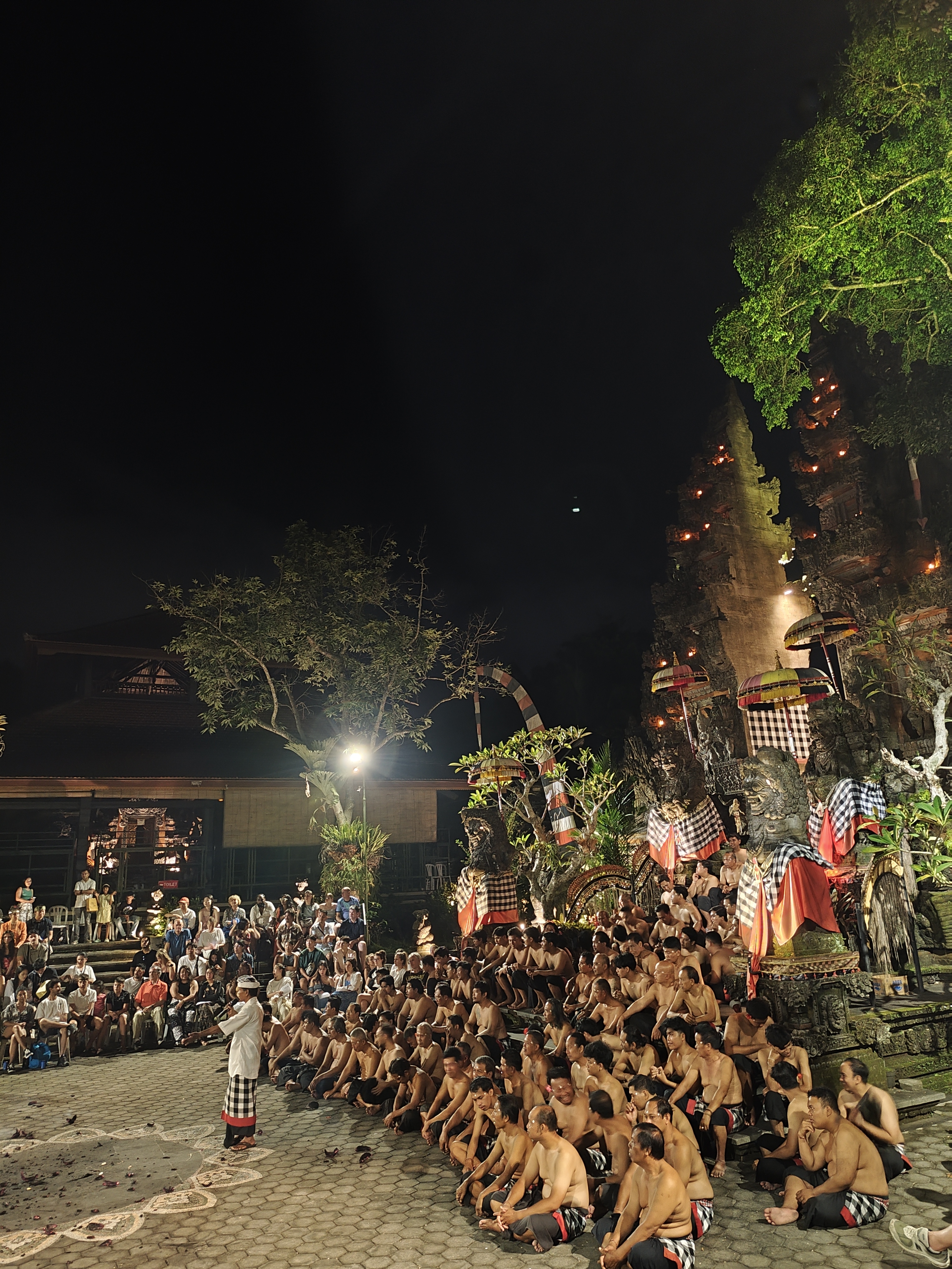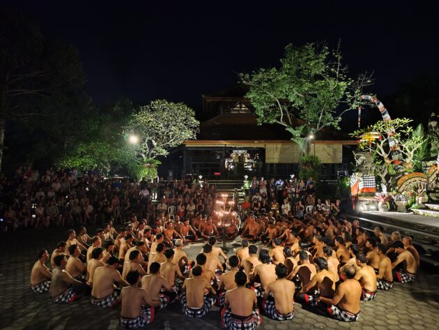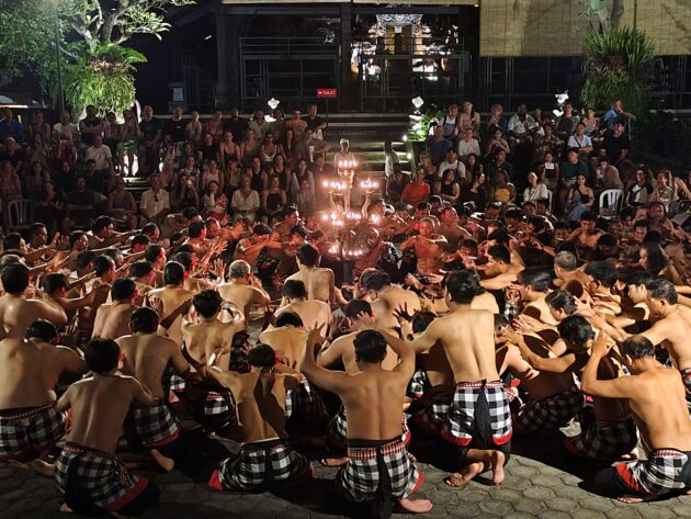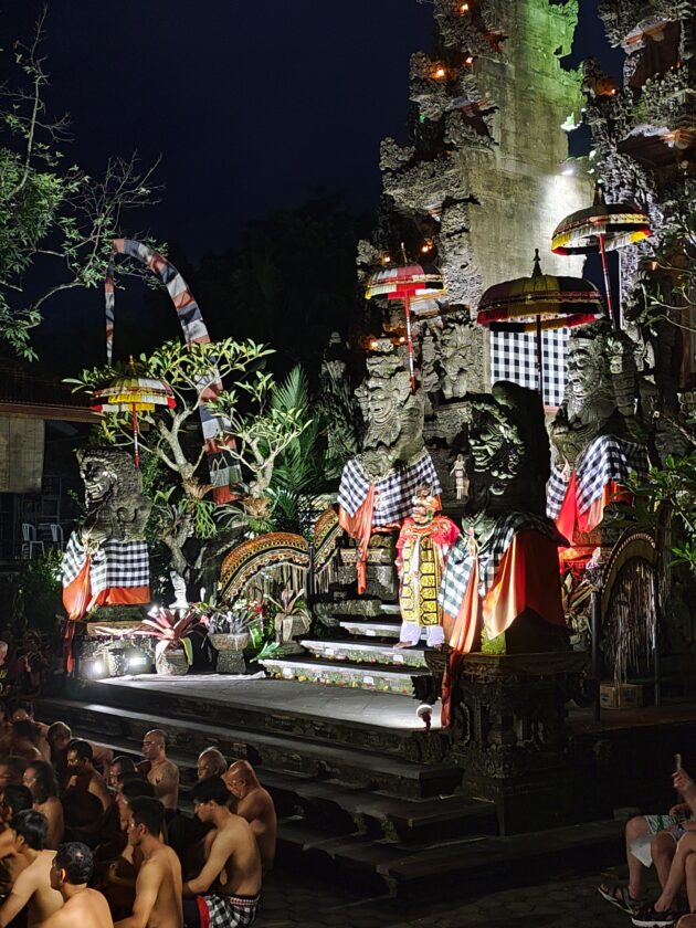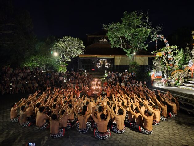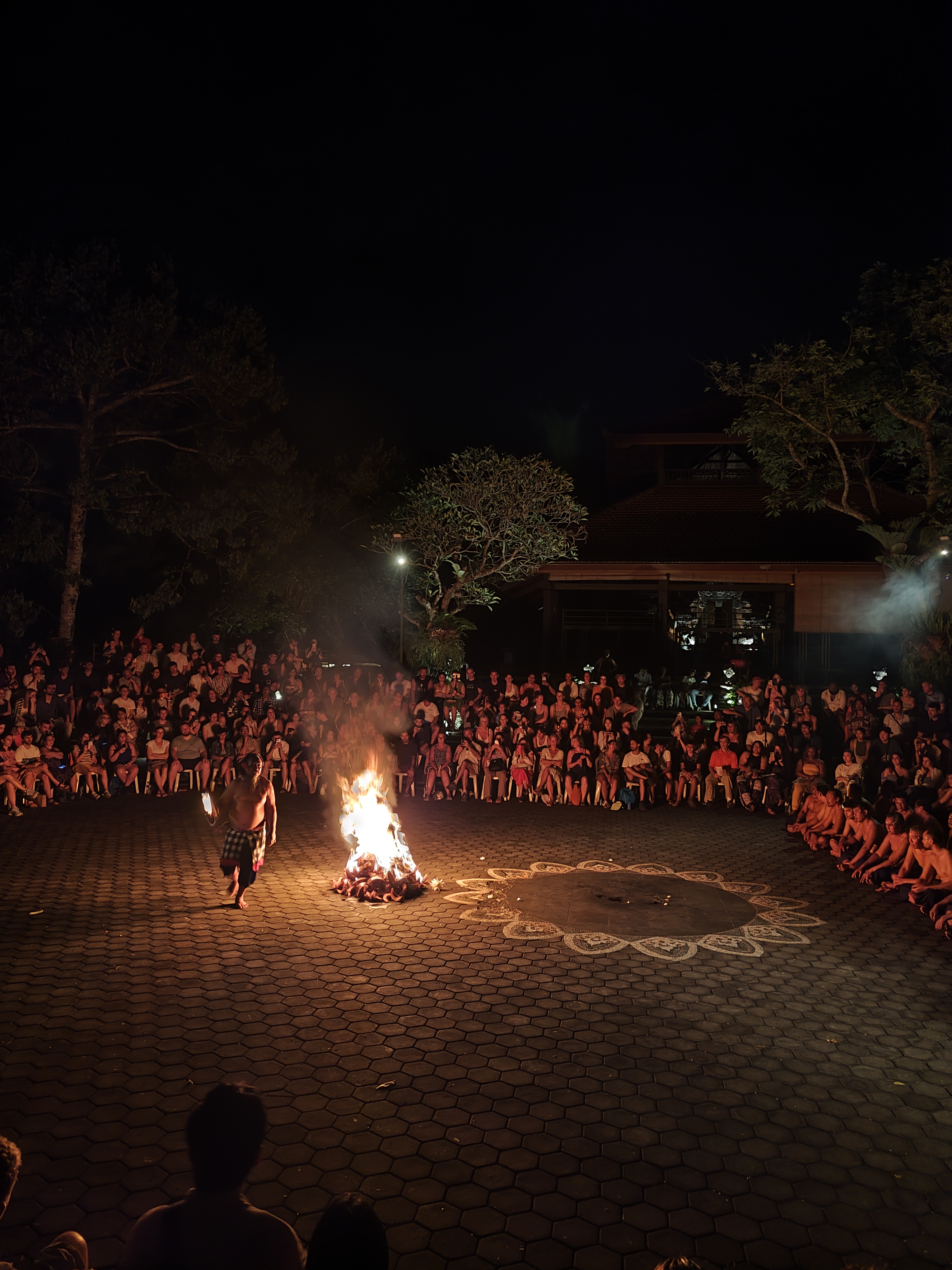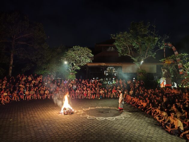 Kekak fire dance este o adaptare teatrala a poemului Ramayana, pe fundalul unei transe ritualice, in care un grup de aproximativ 50 de barbati stau in cercuri concentrice in jurul sursei de lumina si scandeaza ritmic “chak ke-chak ke-chak ke-chak”. De altfel, aceasta a fost si una dintre cele mai dificile scene de fotografiat, in special cand si-a facut aparitia mancatorul de carbuni incinsi, spre finalul spectacolului.