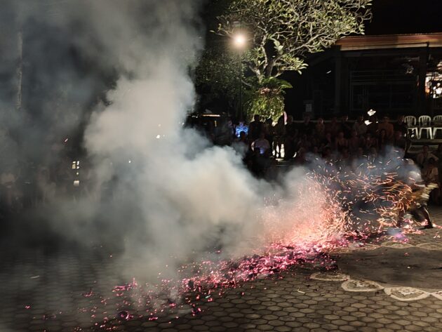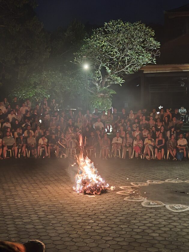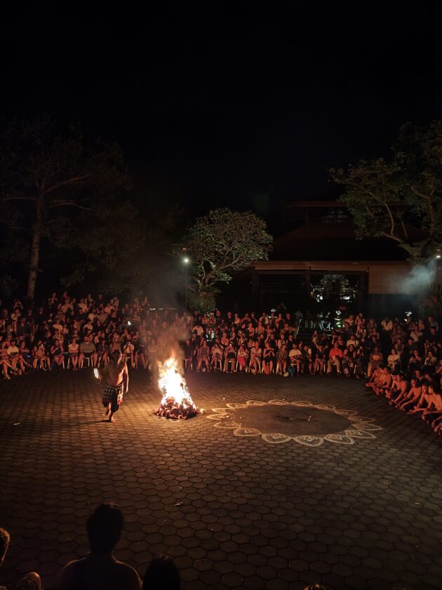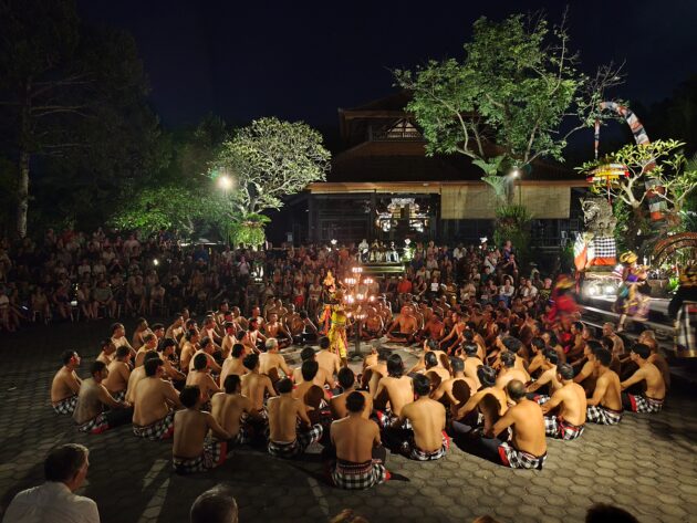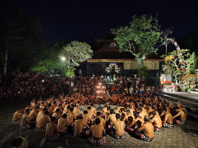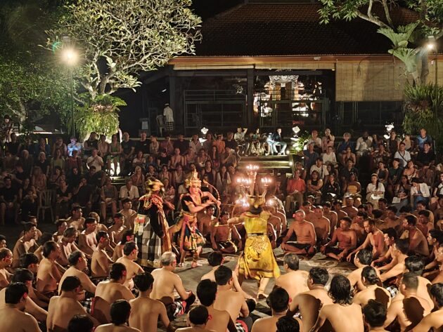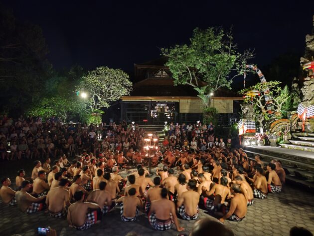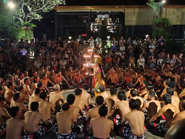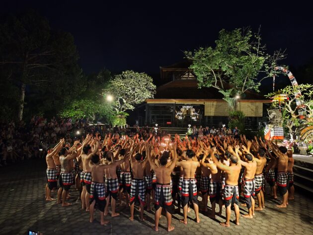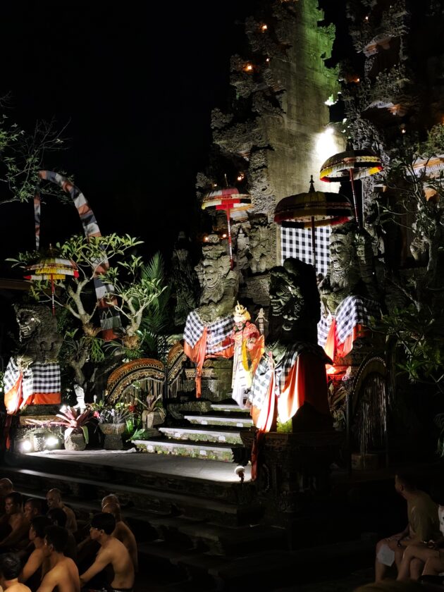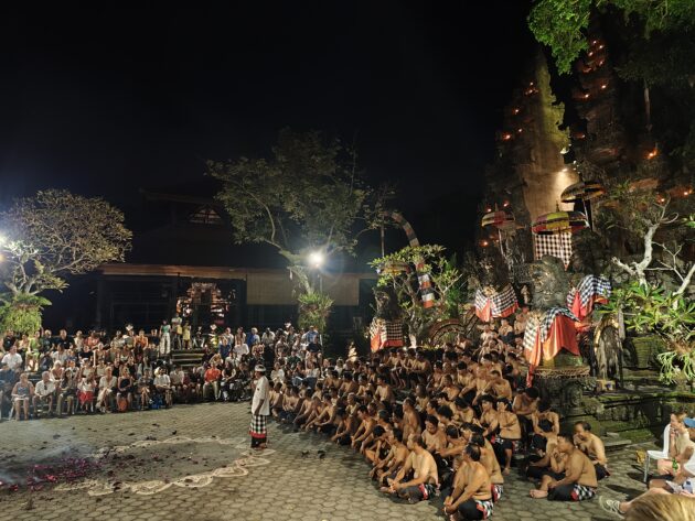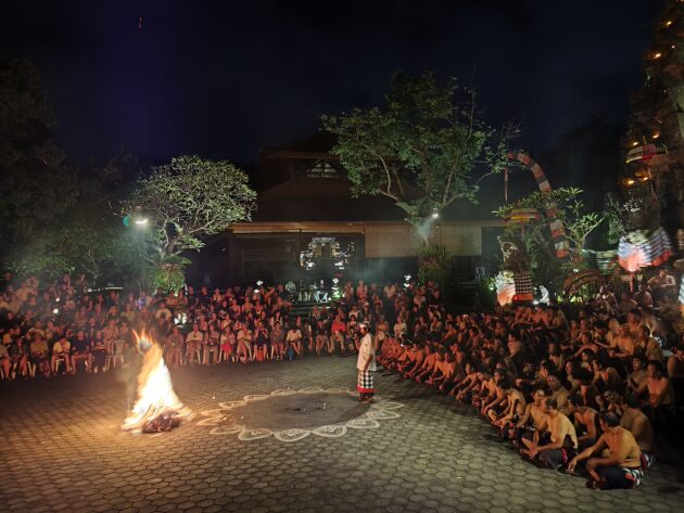 Kekak fire dance este o adaptare teatrala a poemului Ramayana, pe fundalul unei transe ritualice, in care un grup de aproximativ 50 de barbati stau in cercuri concentrice in jurul sursei de lumina si scandeaza ritmic “chak ke-chak ke-chak ke-chak”. De altfel, aceasta a fost si una dintre cele mai dificile scene de fotografiat, in special cand si-a facut aparitia mancatorul de carbuni incinsi, spre finalul spectacolului.