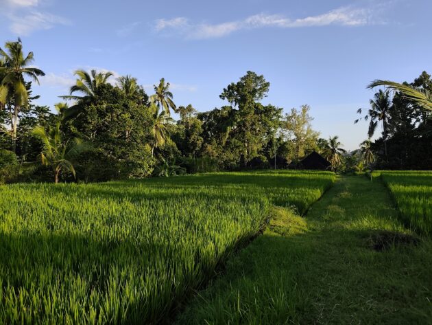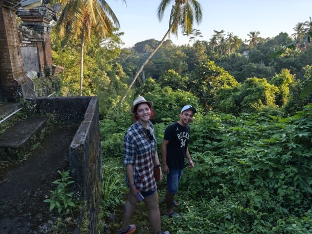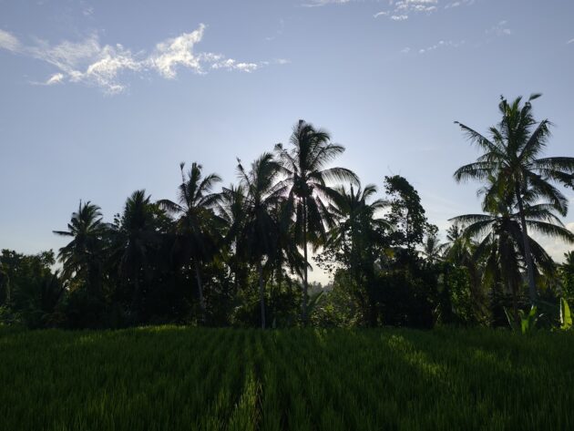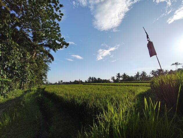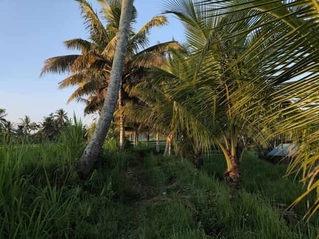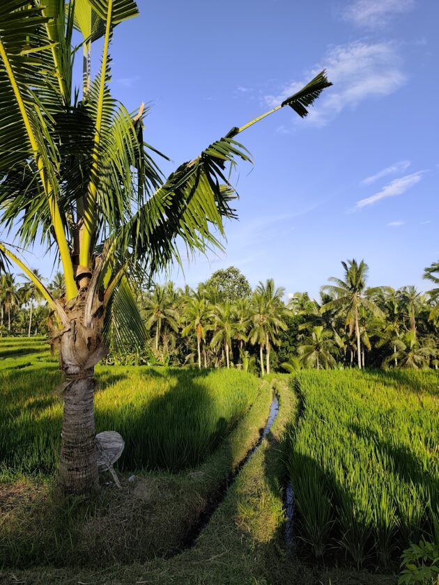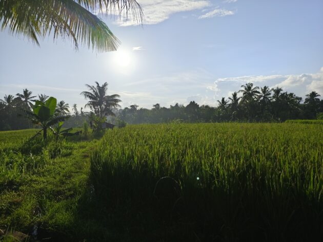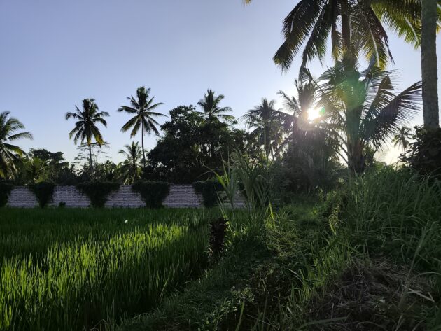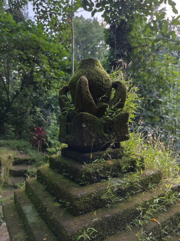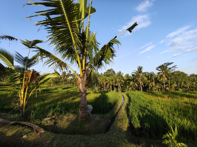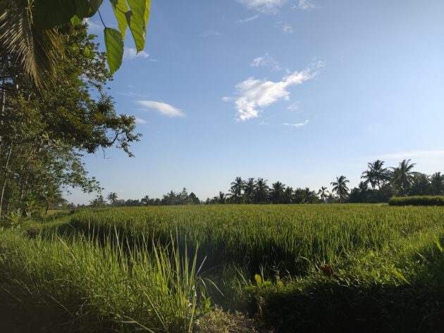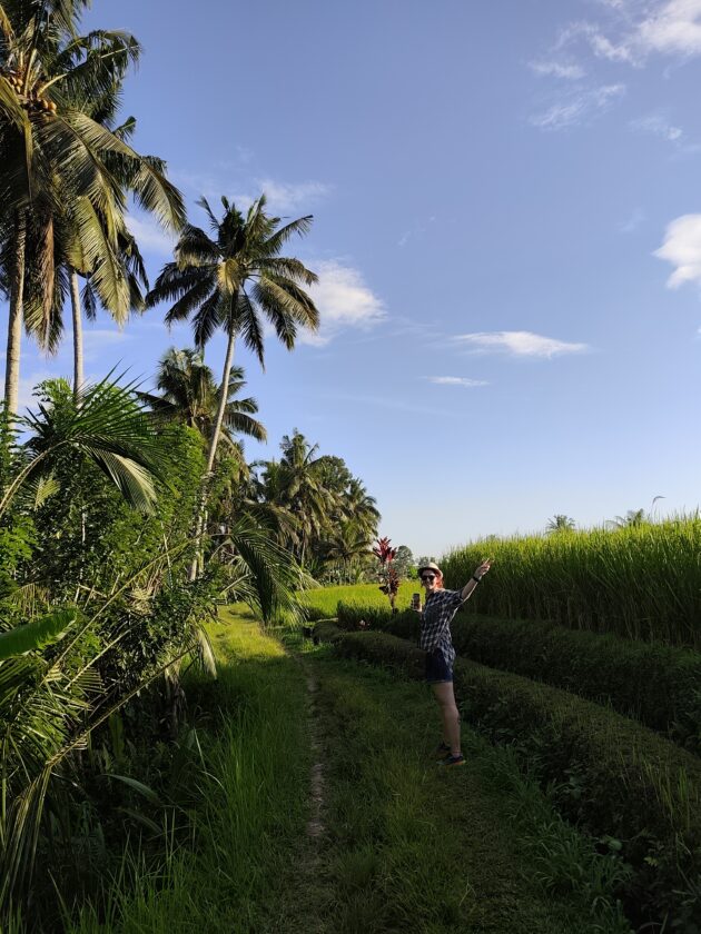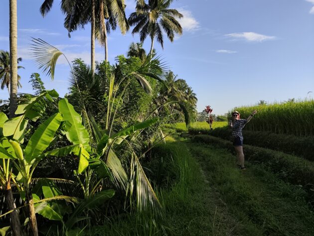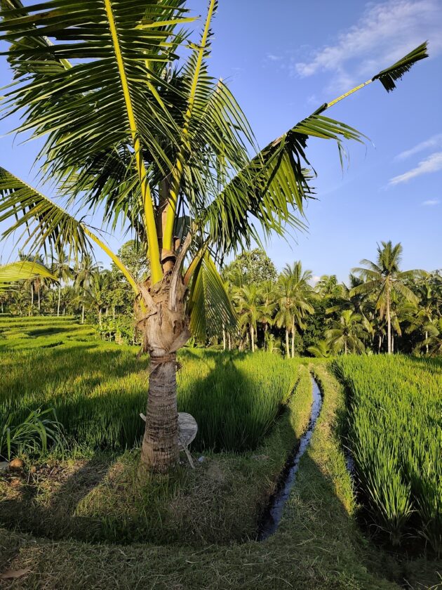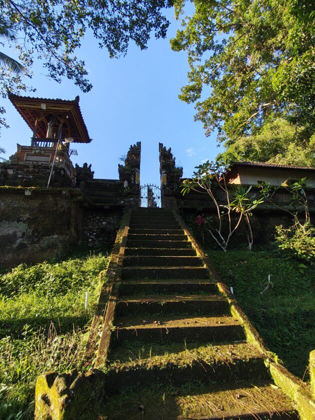 In regiunea Gianyar (Gianyar Regency), in districtul Tegallalang, renumit pentru terasele sale de orez, exista un sat (etichetarea oficiala este catun – hamlet in limba engleza), denumit Banjar Pinjul. Aici locuiesc prietenii nostri, impreuna cu familia, tatal lor fiind preot la templul local. Ei bine, partea din spate a curtii lor este marginita de un mic parau, dincolo de care se intinde terasa de orez a satului.