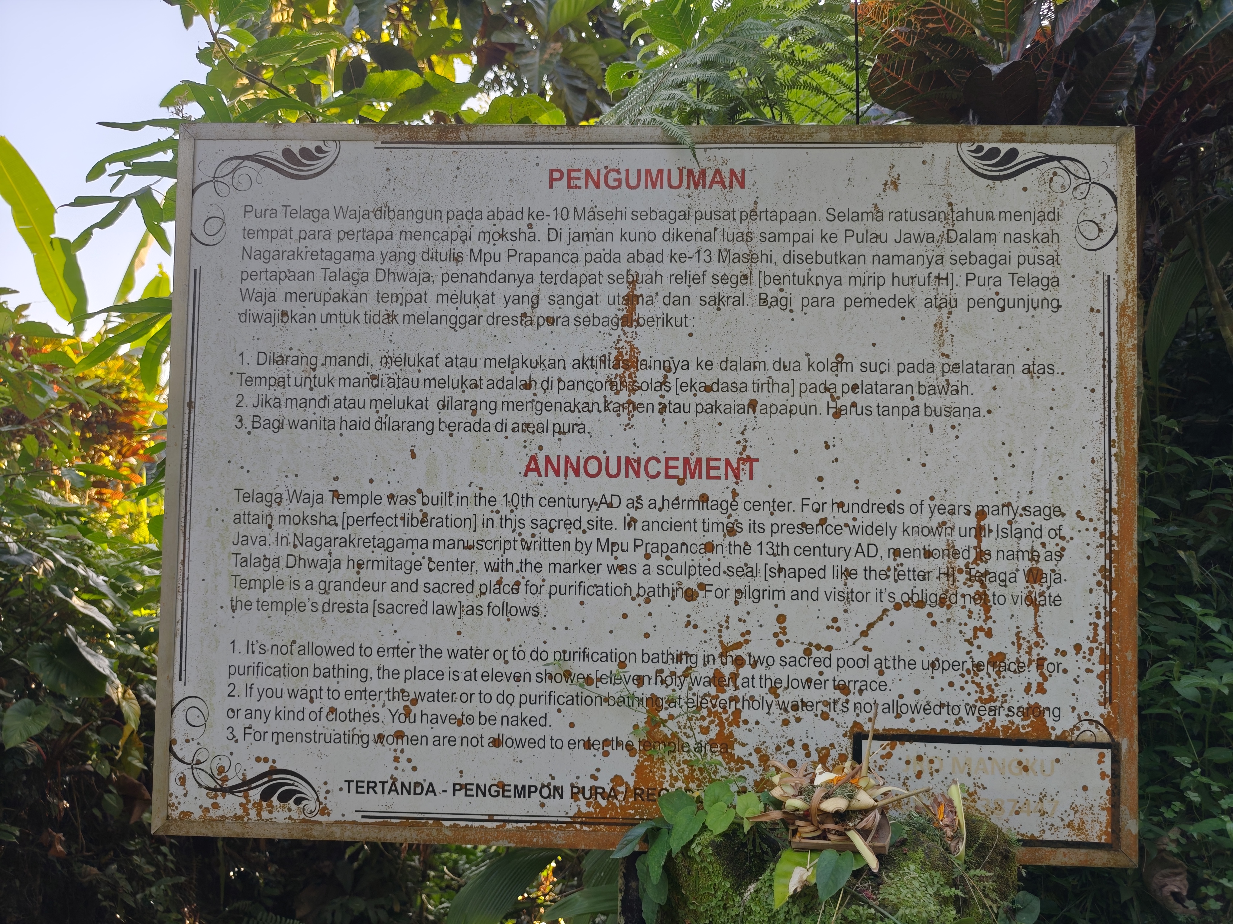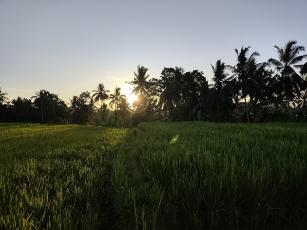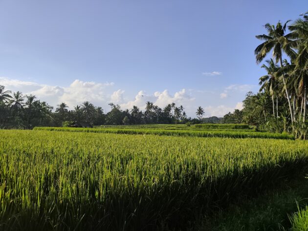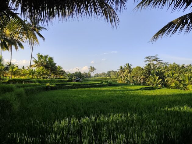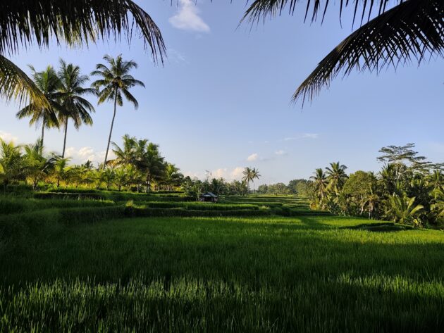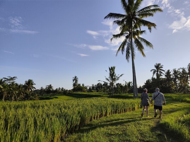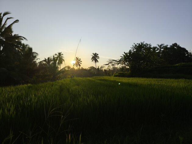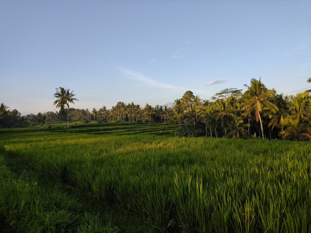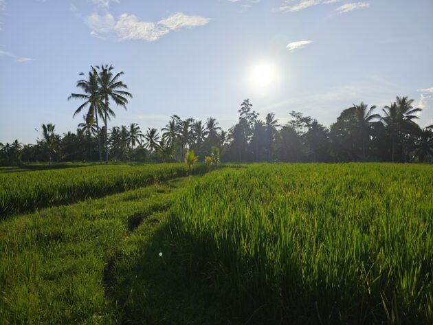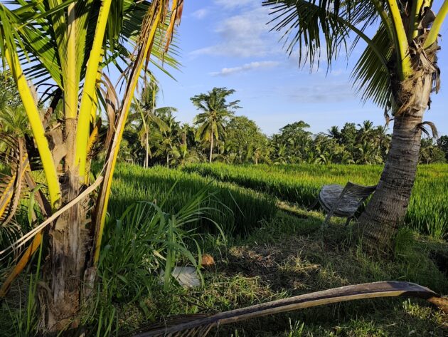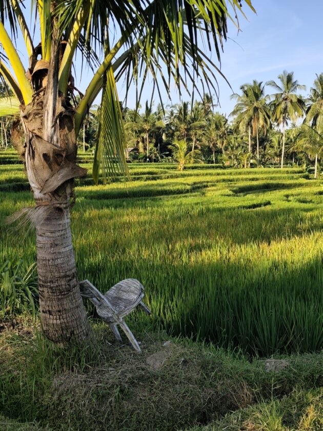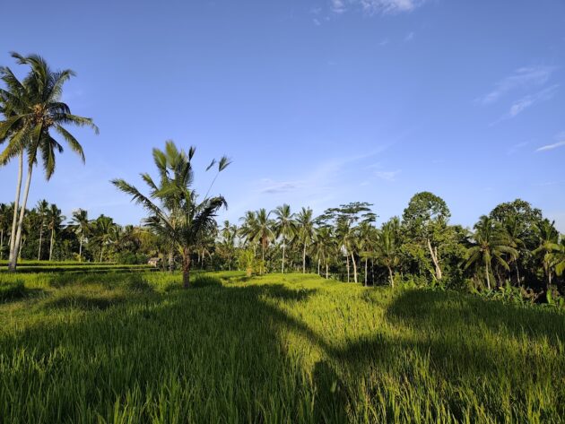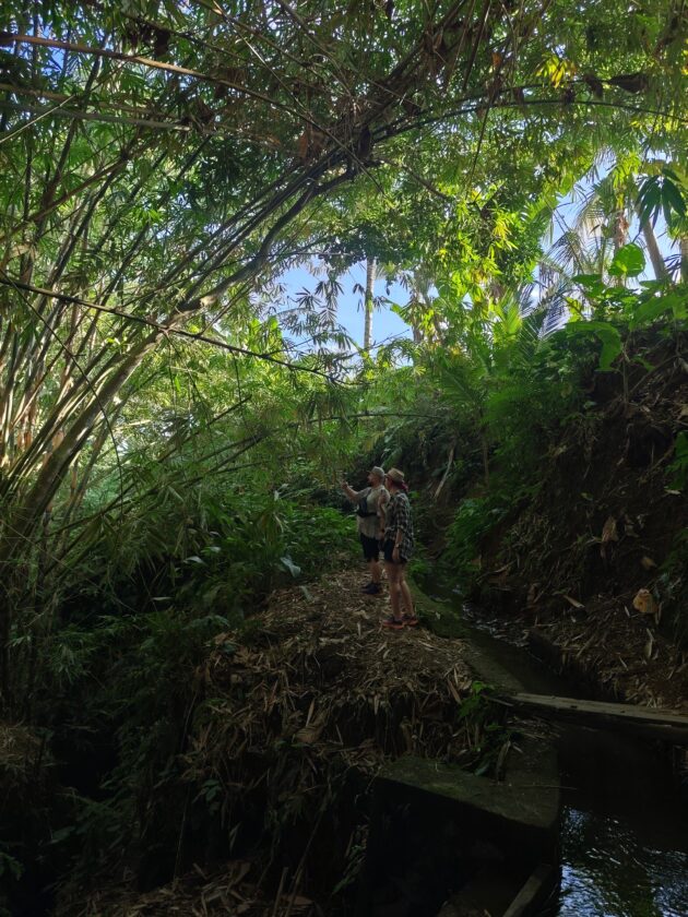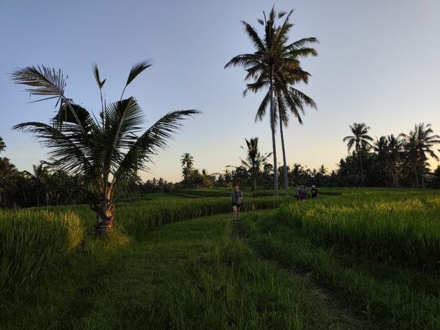In regiunea Gianyar (Gianyar Regency), in districtul Tegallalang, renumit pentru terasele sale de orez, exista un sat (etichetarea oficiala este catun – hamlet in limba engleza), denumit Banjar Pinjul. Aici locuiesc prietenii nostri, impreuna cu familia, tatal lor fiind preot la templul local. Ei bine, partea din spate a curtii lor este marginita de un mic parau, dincolo de care se intinde terasa de orez a satului.