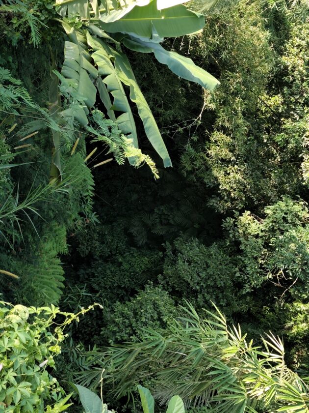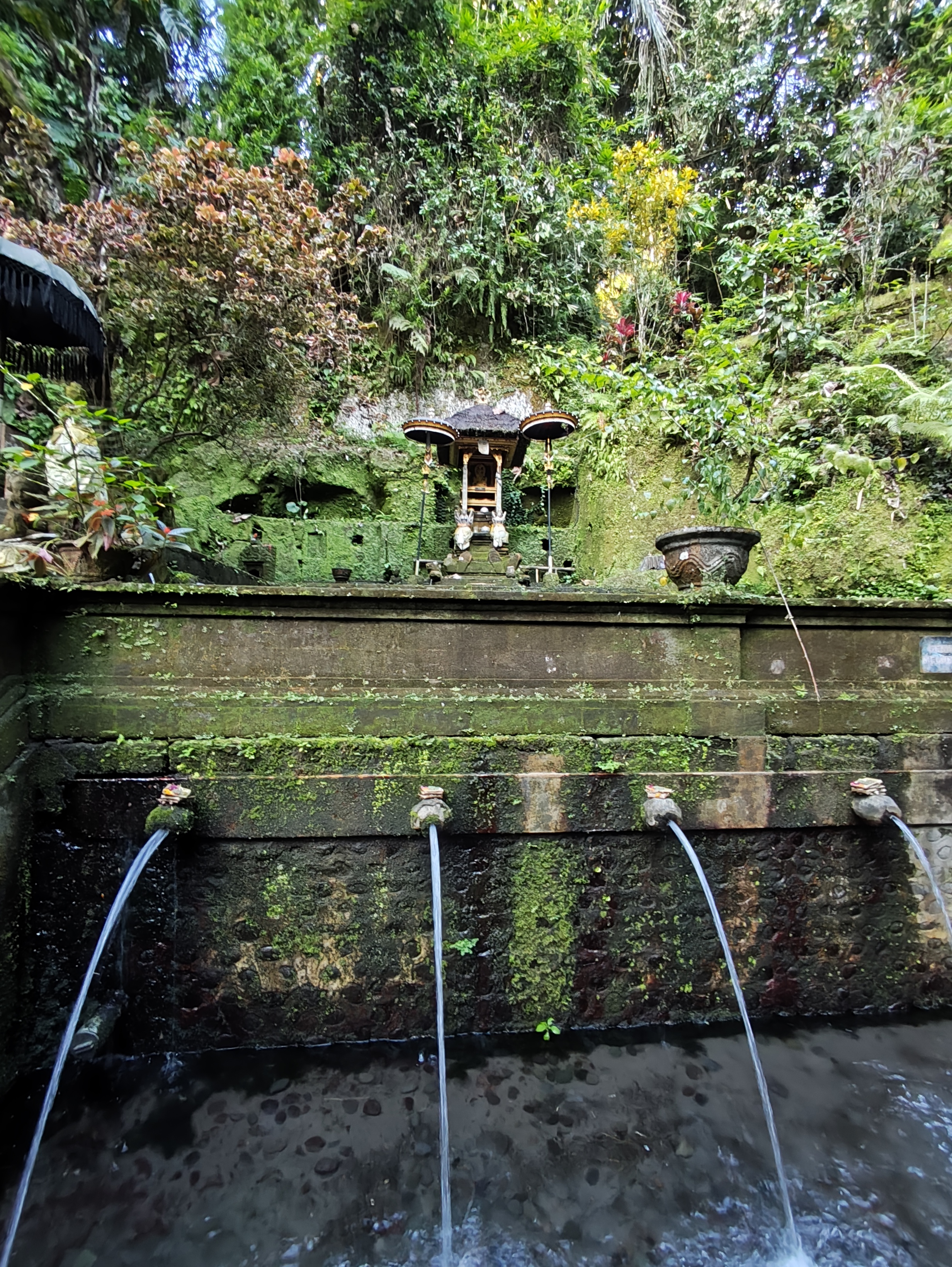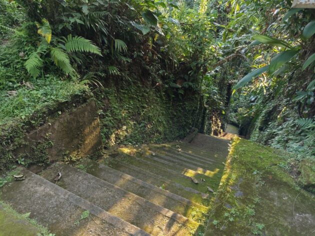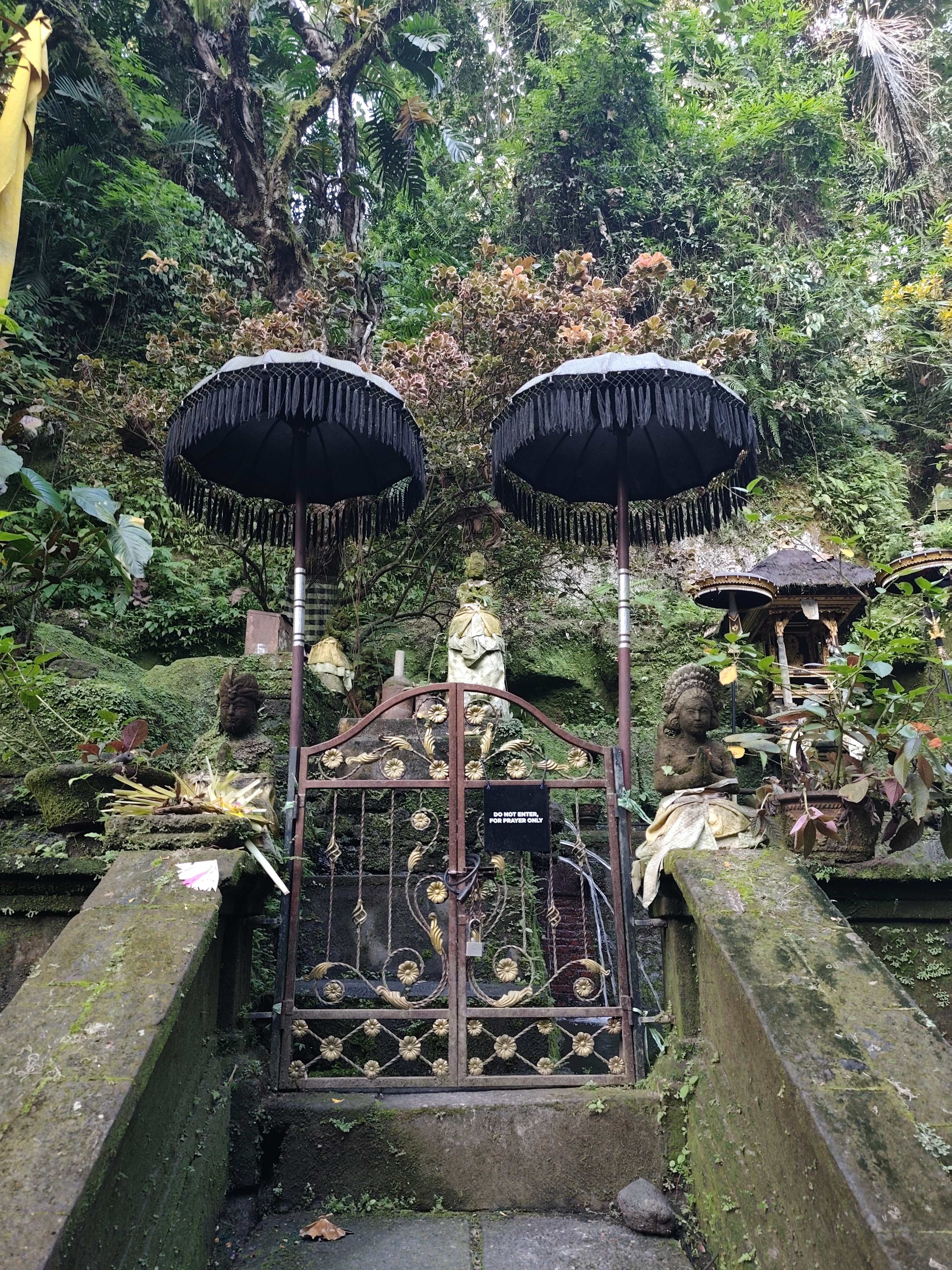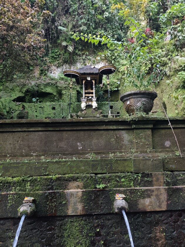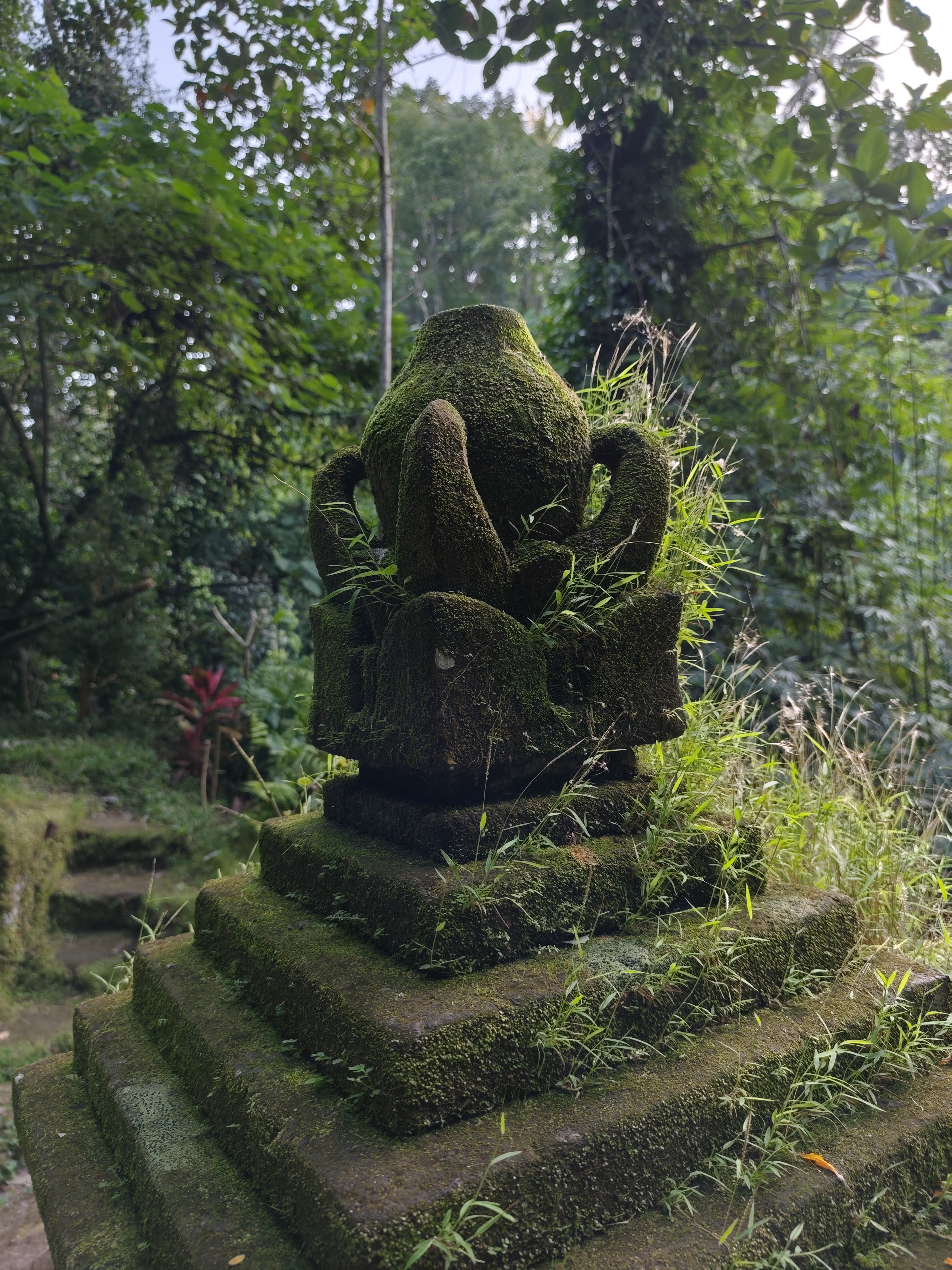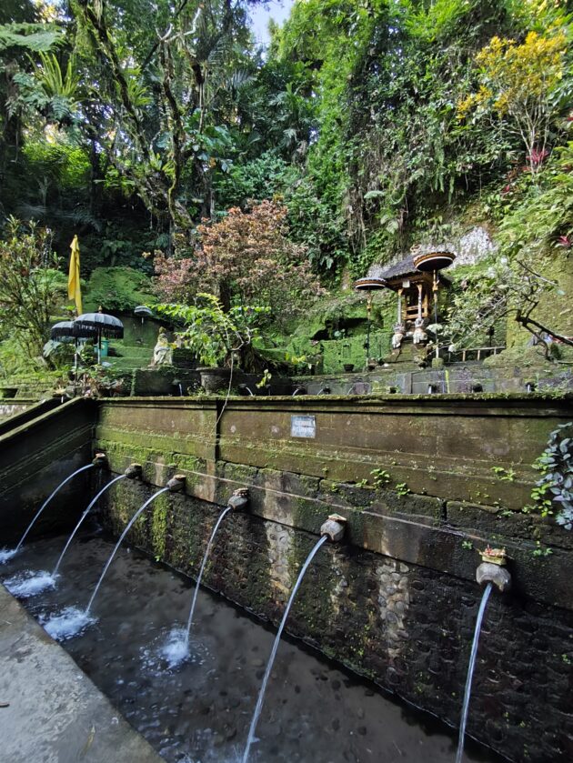 Am avut parte de peisaje superbe, dar si de ceva activitate fizica, coborarea catre templu realizandu-se pe o serie de trepte abrupte. Am vazut pasari de toate felurile, dar si maimute care se jucau in copac si care uneori se apropie chiar de curtile oamenilor. De altfel, orataniile locale, cum ar fi gainile, dorm in copac, deoarece, la fel cum la noi la Predeal primim vizite de la urs, in Bali te mai viziteaza din cand in cand varanul.