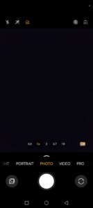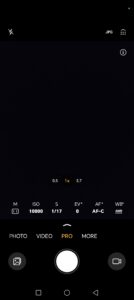Avem la dispozitie 6 moduri intre care putem comuta rapid, mai precis Night, Portrait, Photo, Video, Pro si More, selectorul lungimilor focale fiind dispus deasupra acestora. Aici gasim 0.6x (camera ultrawide), 1x (camera principala), 2x (zoom din camera principala), 3.7x (camera tele) si 10x (zoom din camera tele).