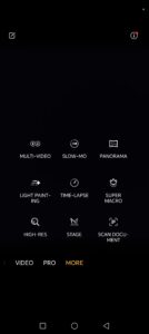 In categoria More gasim toate functiile avansate, cum ar fi timelapse, slow-mo, super macro, multi-video, light painting sau panorama. Un mod interesant de fotografiere este modul sport, care poate realiza mai multe fotografii in rafala, algoritmul AI prioritizand subiectele in miscare (Motion Sensing Capture).