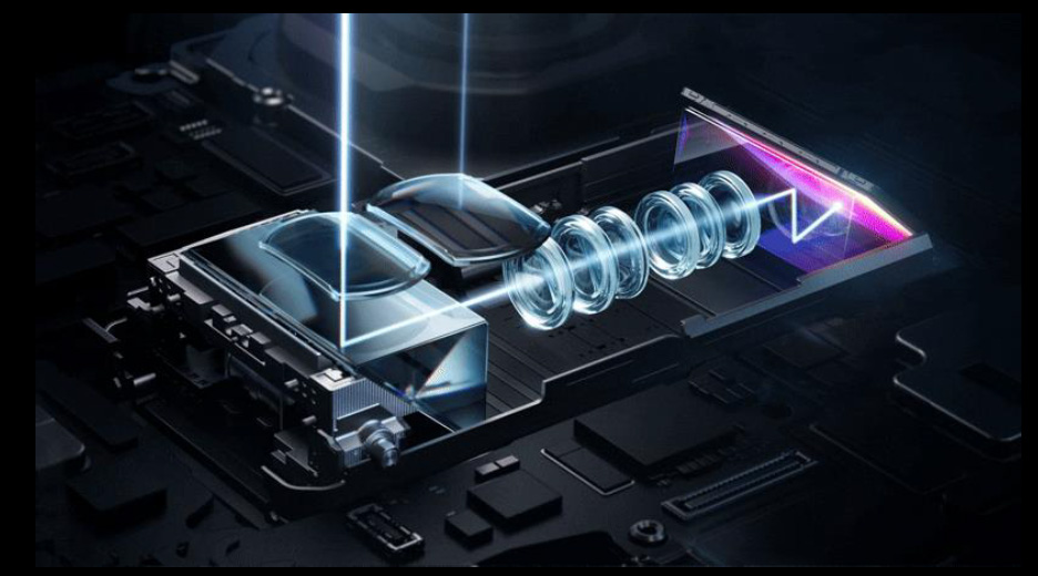 Apoi avem de-a face cu o camera ultra-wide, bazata pe un senzor RYYB de 40 MP, cuplat cu un obiectiv cu o deschidere a diaframgei F2.2, o lungime focala echivalenta de 13mm si autofocus cu detectie de faza. Si apoi… avem doua camere tele… ma rog, una singura. Despre ce este vorba? Ei bine, HUAWEI au echipat Pura 80 Ultra cu doua lentile frontale si un mecanism culisant alcatuit dintr-o pentaprisma, mai multe lentile comune si inca o prisma dispusa in dreptul senzorului.