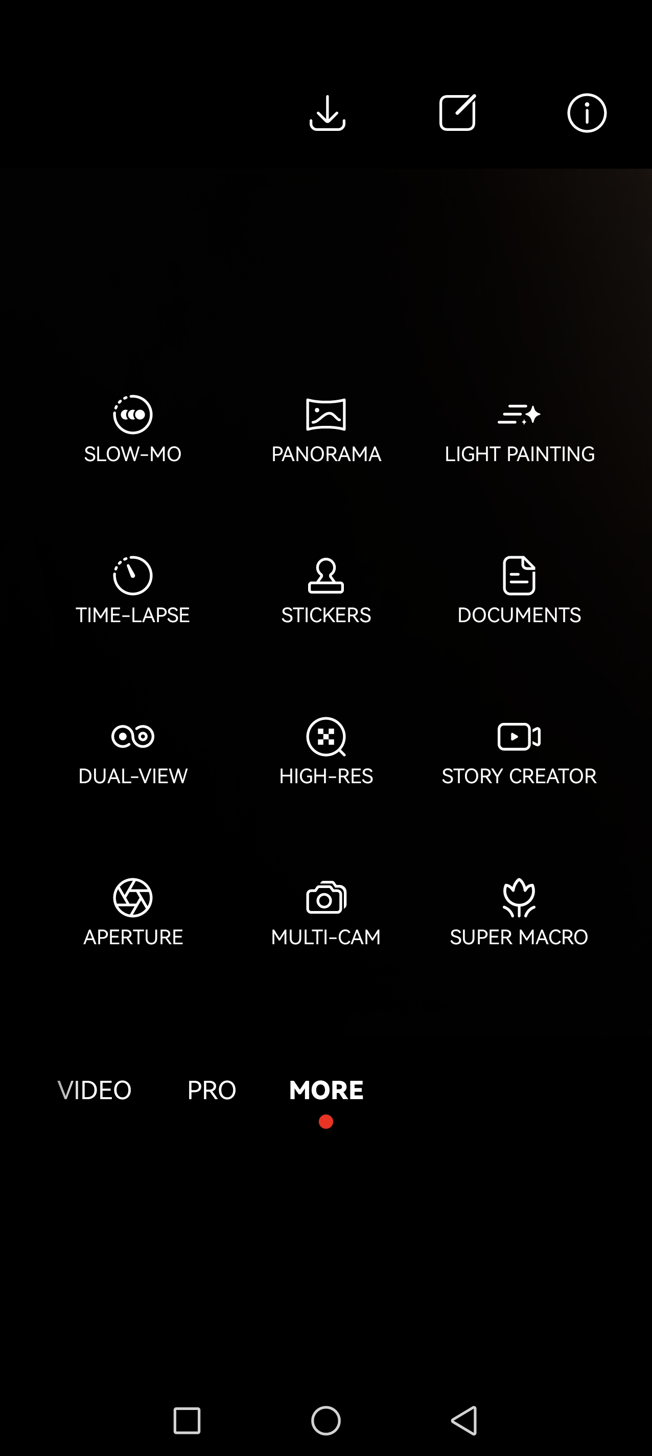 Anii au trecut, au aparut noi versiuni de Android si implicit EMUI, insa expertienta generala oferita de aplicatia camera de pe telefoanele HUAWEI nu s-a indepartat prea mult de origini. Astfel, avem acces rapid la cele mai importante functii sau moduri de fotografiere, mai precis Night, Snapshot, Portrait, Photo Video si Pro, in meniul More fiind disponibile si modurile speciale de fotografiere sau filmare, cum ar fi Dual View, Slow Mo, Light Painting, Super Macro sau Story Creator.